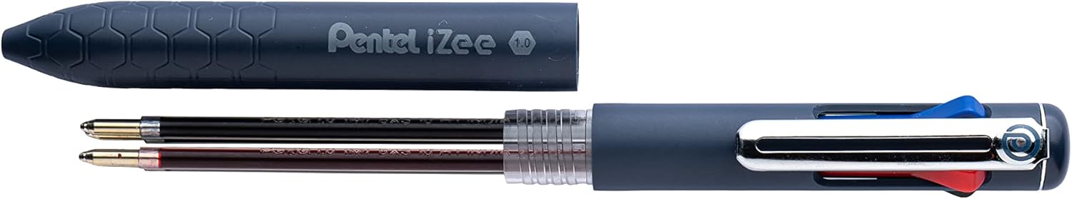 Penna a sfera a 4 colori (nero/rosso/blu/verde) Colori a scelta tramite pulsanti laterali nel colore dell'inchiostro Con clip in metallo Spessore tratto medio: 0,5 mm Ricaricabile con mina BXS10