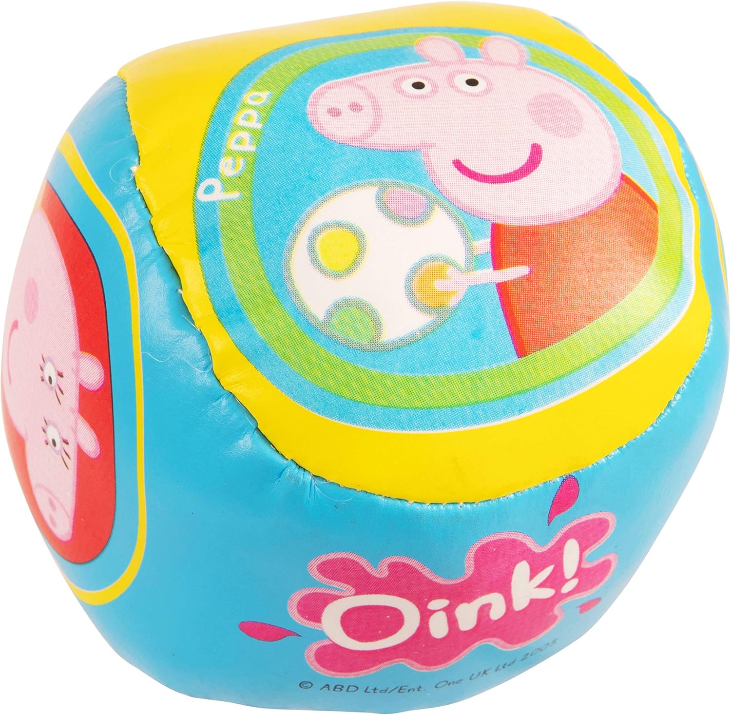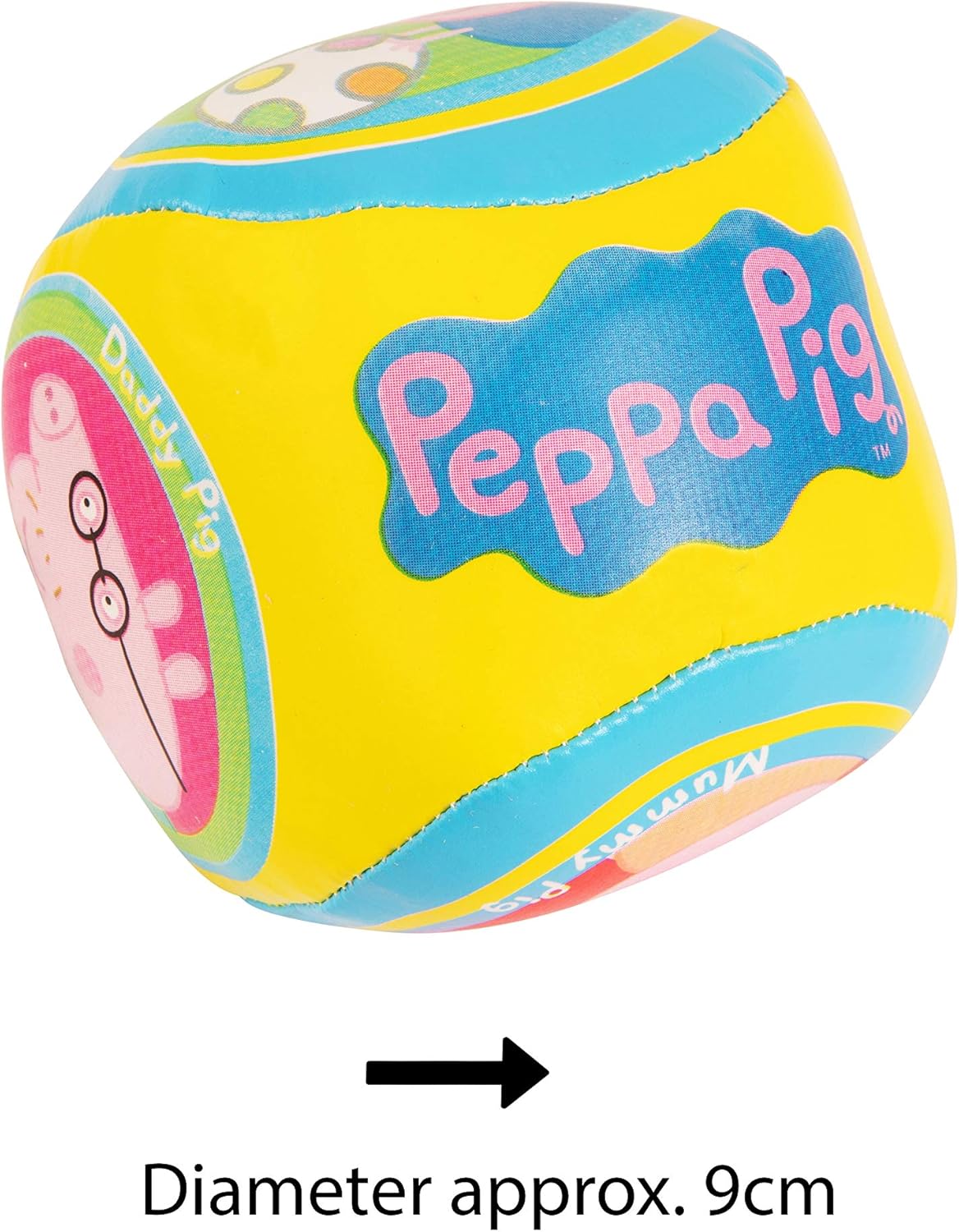 La palla morbida Peppa Pig è una morbida palla riempita di spugna che è un'alternativa più sicura per chi ha bambini piccoli e probabilmente causerà molti meno danni se gettata in casa. Più piccolo di un calcio normale, il pallone morbido è appositamente progettato per chi ha mani e piedi più piccoli. Con il design Peppa Pig questa è una grande palla per ogni piccolo fan dello show televisivo.