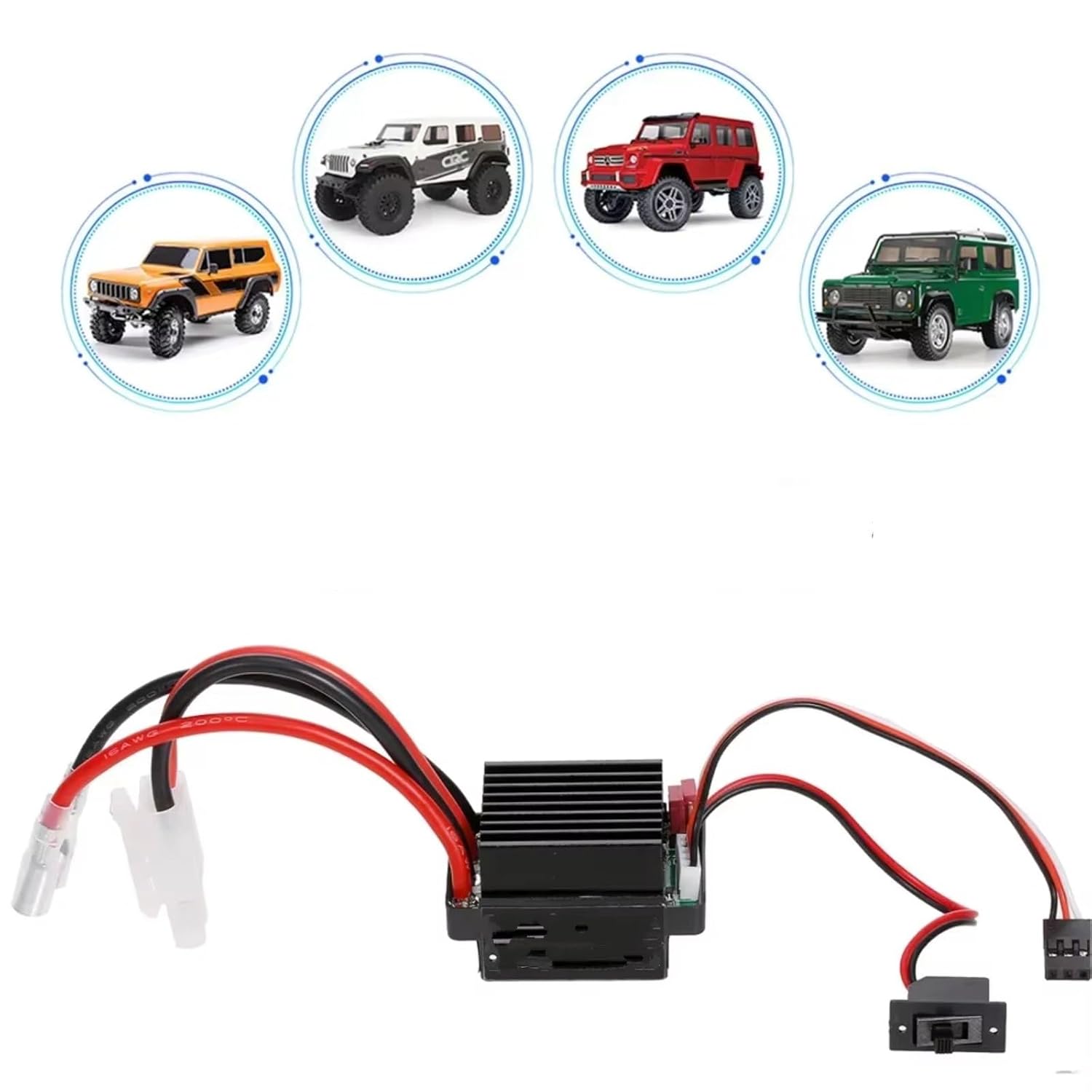 Materiale: il controller RC è realizzato con materiali speciali, lavorazione squisita, utilizzo a lungo termine, modulo condensatore, buona dissipazione del calore, Per forte resistenza alla corrente, Per forte capacità anti-interferenza in grado di offrirti una buona esperienza; Caratteristiche: Le semplici opzioni di impostazione di questo controller garantiscono una configurazione diretta per l'affidabilità; scoprirai che questa funzione aiuta ad avviare e far funzionare rapidamente i tuoi veicoli senza complessità tecnica; Installazione: il controller di velocità può utilizzare il ricevitore come fonte di alimentazione, risparmiando tempo e fatica, il processo è semplice e il controllo del controller collegato al ricevitore può essere facilmente completato senza alcuna attrezzatura speciale; Controllo preciso: questo accessorio per il controllo remoto dell'auto giocattolo consente un controllo preciso dei movimenti dell'auto; La sua maneggevolezza reattiva facilita la guida su curve complesse e spazi ristretti, garantendo una guida stabile; Assistenza post-vendita: offriamo un servizio post-vendita completo; In caso di problemi durante l'utilizzo, contatta il nostro servizio clienti: saremo lieti di assisterti, assicurandoti di poter guidare la tua auto giocattolo senza preoccupazioni;