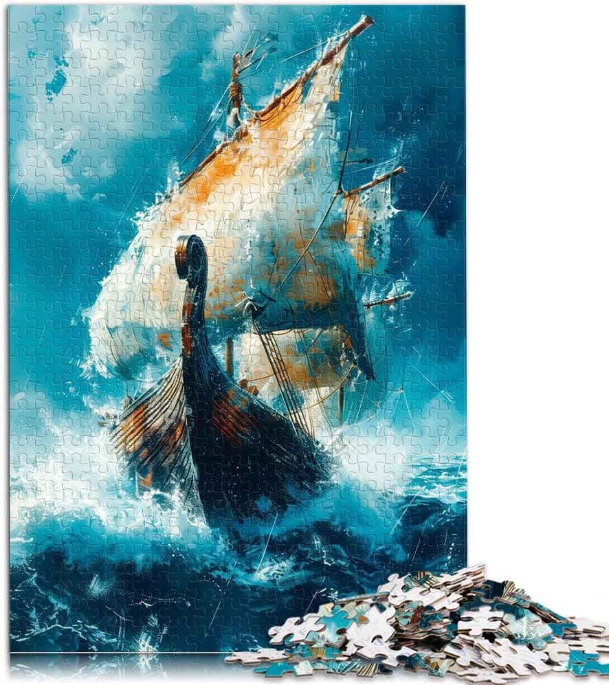 per adultiPuzzle da 1000 pezzi Vichinghi a vela Fatto di legno Adatto a partire dai 14 anni sfida educativa Attività divertenti a casa, regali di compleanno, regali di viaggio misurare:50x75cm