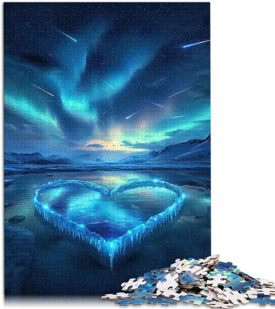 per adultiPuzzle da 2000 pezzi Aurora boreale a forma di cuore congelato Fatto di cartone Adatto a partire dai 14 anni Assemblaggio del modello Giocattoli da regalo misurare:70x100cm