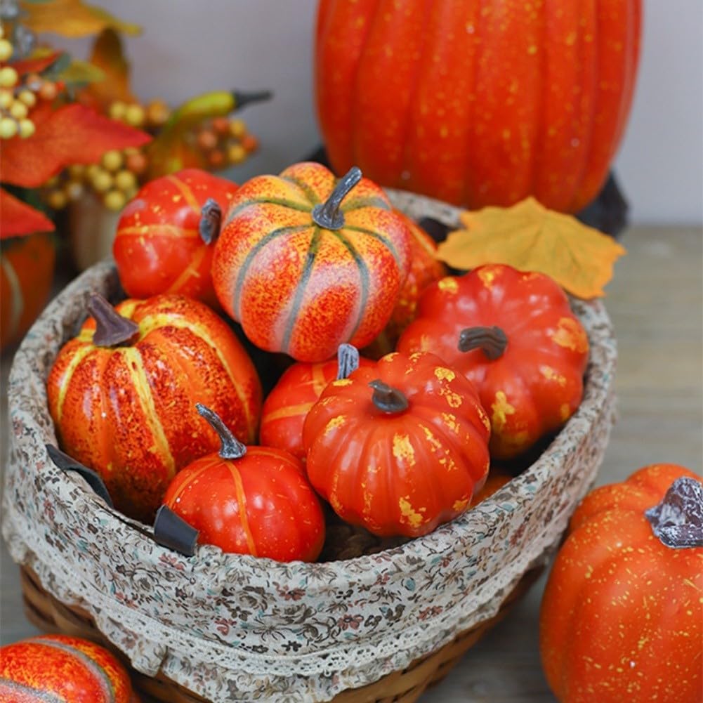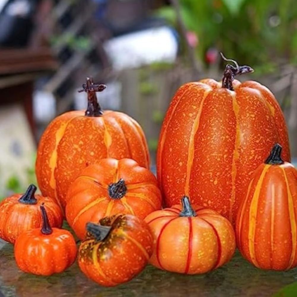 Set di sette zucche: questa collezione include 7 zucche artificiali splendidamente realizzate progettate per elevare le tue decorazioni di Halloween e Ringraziamento con facilità. Materiale leggero: realizzate in schiuma, queste zucche decorative non sono solo leggere, ma anche progettate per una maggiore durata, consentendo di utilizzarle anno dopo anno. [ELEMENTI D'ARREDO ELEGANTI] Utilizza queste zucche uniche come decorazioni da tavola o accenti esterni; aggiungono un tocco affascinante ovunque vengano esposte durante la stagione autunnale. Colori autunnali vivaci: il ricco colore arancione migliora qualsiasi arredamento a tema autunnale, creando un'atmosfera invitante per familiari e amici. [Guida alle dimensioni] Ogni zucca misura 22,9 cm e 20,8 cm; ricordati di fare riferimento alle tue esigenze di dimensionamento quando organizzi queste belle decorazioni.
