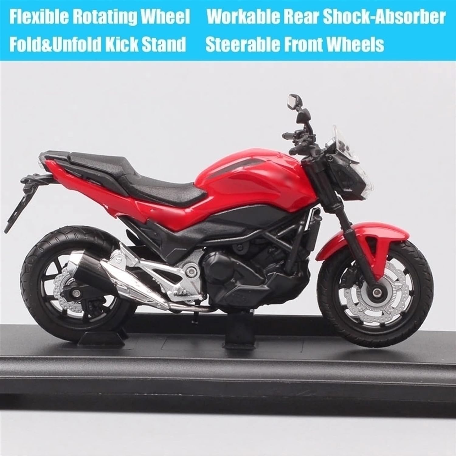 Può essere utilizzato come elemento decorativo o per creare un'atmosfera motociclistica realistica. Per bambini 1:18 scale Fonde Sotto Pressione e Veicoli Giocattolo modello di moto in miniatura moto regalo hobby box stand Per NC750S 2018 Ruote girevoli flessibili Ammortizzatore lavorabile Cavalletto pieghevole e aperto Ruote anteriori sterzanti Scala: 1/18 Dimensioni: 11,7 * 4,5 * 6,3 cm (netto) Materiale: ABS + lega + pneumatico in gomma La confezione include: 1 modello di moto in lega Per NC750S 2018 La struttura robusta è resistente alle cadute e durevole, consentendo un'esperienza di guida divertente.