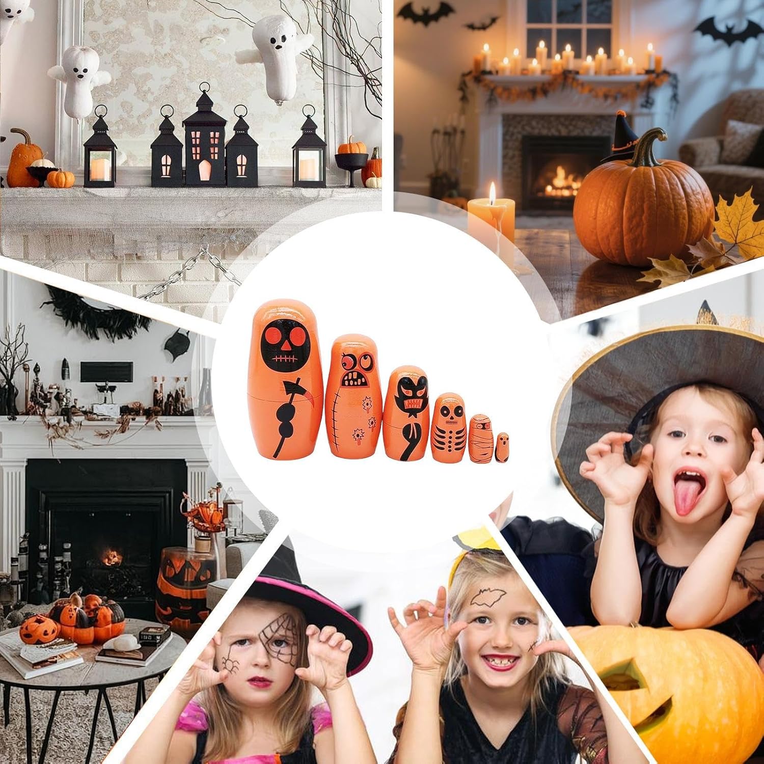 Display multidimensionale: Set di matriosche in misure scalari offre opzioni espositive polivalenti. Funge sia da accento decorativo che elemento d'arredo interattivo per diversi contesti con versatilità senza pari. Regalo : Queste matrioske russe fatte a mano sono un'idea regalo o per occasioni speciali, offrendo una piacevole che cattura l'arte culturale in modo elegante e memorabile. Costruzione : Realizzate con cura, queste bambole in legno artigianali vantano una finitura liscia levigata e decorazioni dipinte a mano, combinando attrattiva estetica con la resistenza naturale di buon materiale ligneo per un uso duraturo. Capolavoro Stagionale Horror: Ogni bambola mostra disegni horror unici dipinti a mano, integrandosi perfettamente nell'arredo festivo e diventando ricercati collezionabili Halloween Manutenzione Collezionisti: Conserva il fascino originale delle matriosche proteggendole dalla luce solare e applicando tecniche di pulizia a secco, attenzioni speciali per la cura del legno nel
