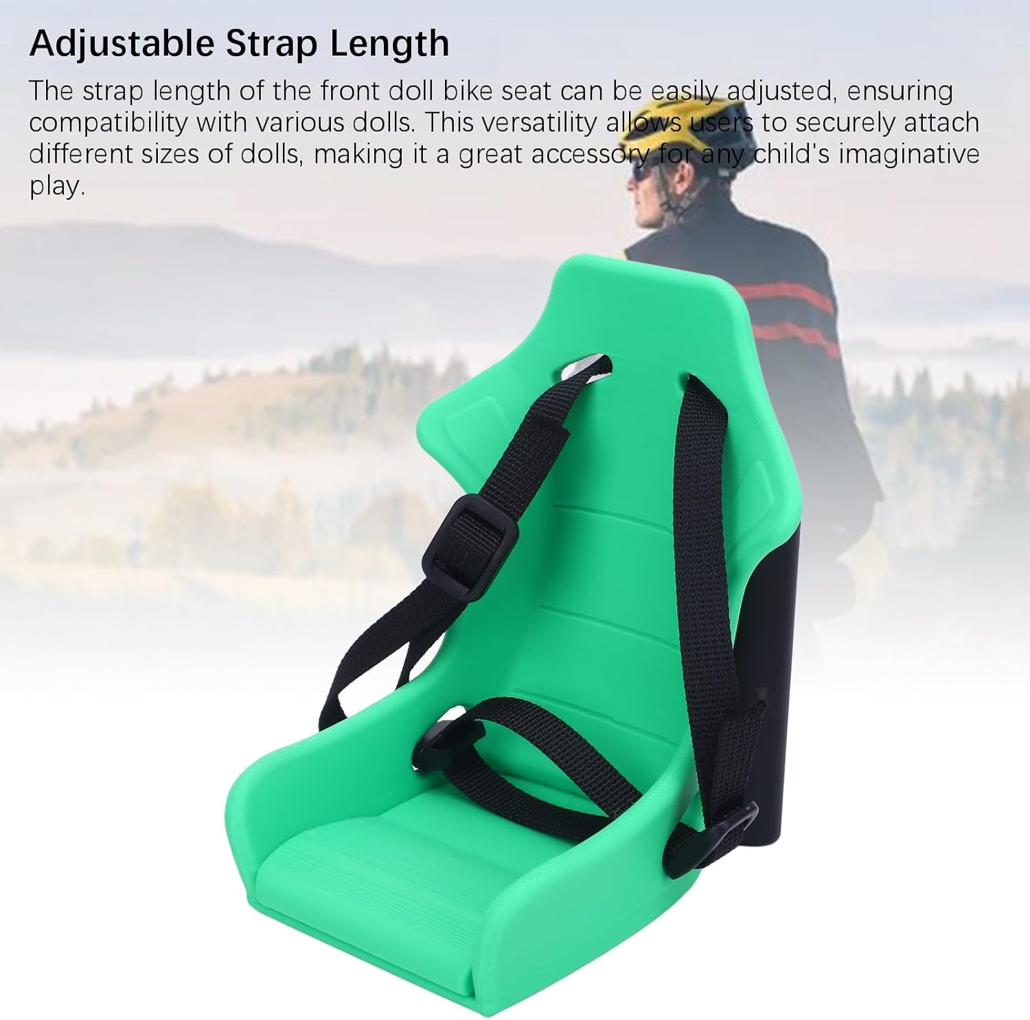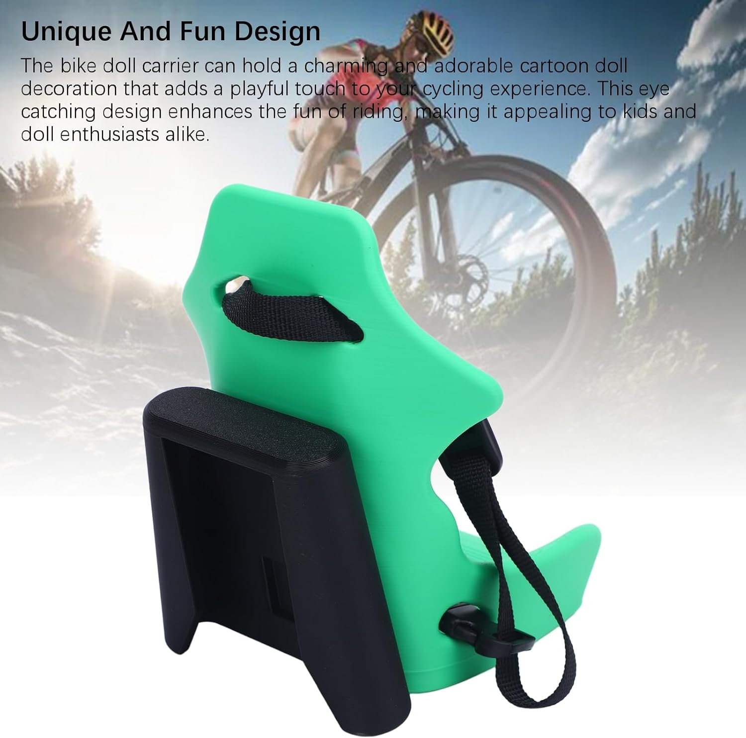 1. Per bambole con lunghezza della cinghia regolabile che si personalizza facilmente per adattarsi a bambole di varie dimensioni per un fissaggio sicuro durante il gioco. 2. Per bambole con design pieghevole appositamente realizzato per agganciarsi perfettamente a piccole biciclette pieghevoli per riporle e trasportarle comodamente. 3. Per bambole realizzate in materiale plastico eccellente che offre una struttura leggera ma robusta che resiste alle condizioni di guida all'aperto. 4. Per bambole dal design unico e divertente che contiene affascinanti bambole dei cartoni animati per migliorare visivamente l'esperienza ciclistica per i bambini. 5. Per le bambole incoraggia il gioco fantasioso integrando i posti a sedere delle bambole nei giri in bicicletta per favorire la narrazione e lo sviluppo delle abilità sociali.