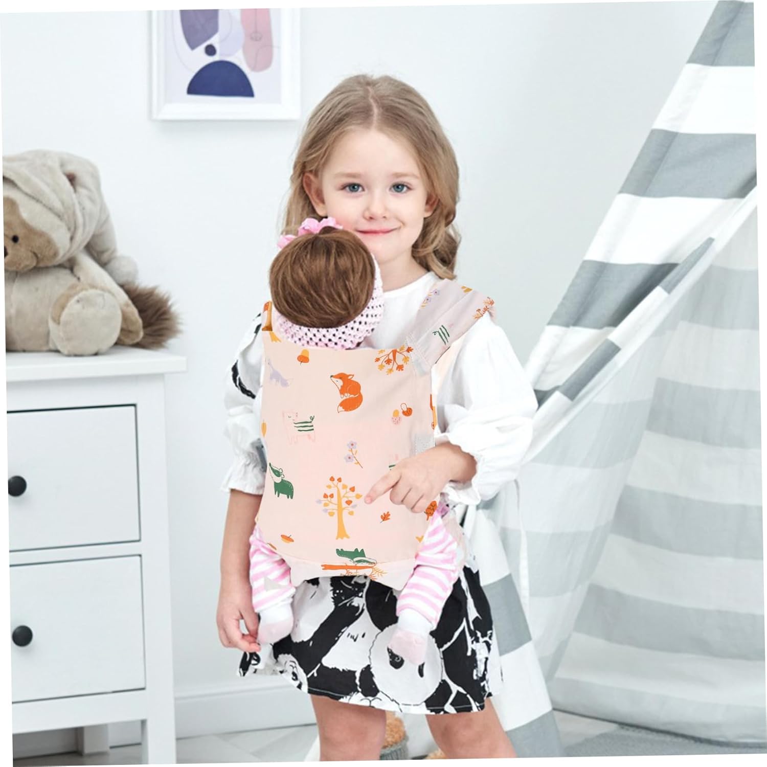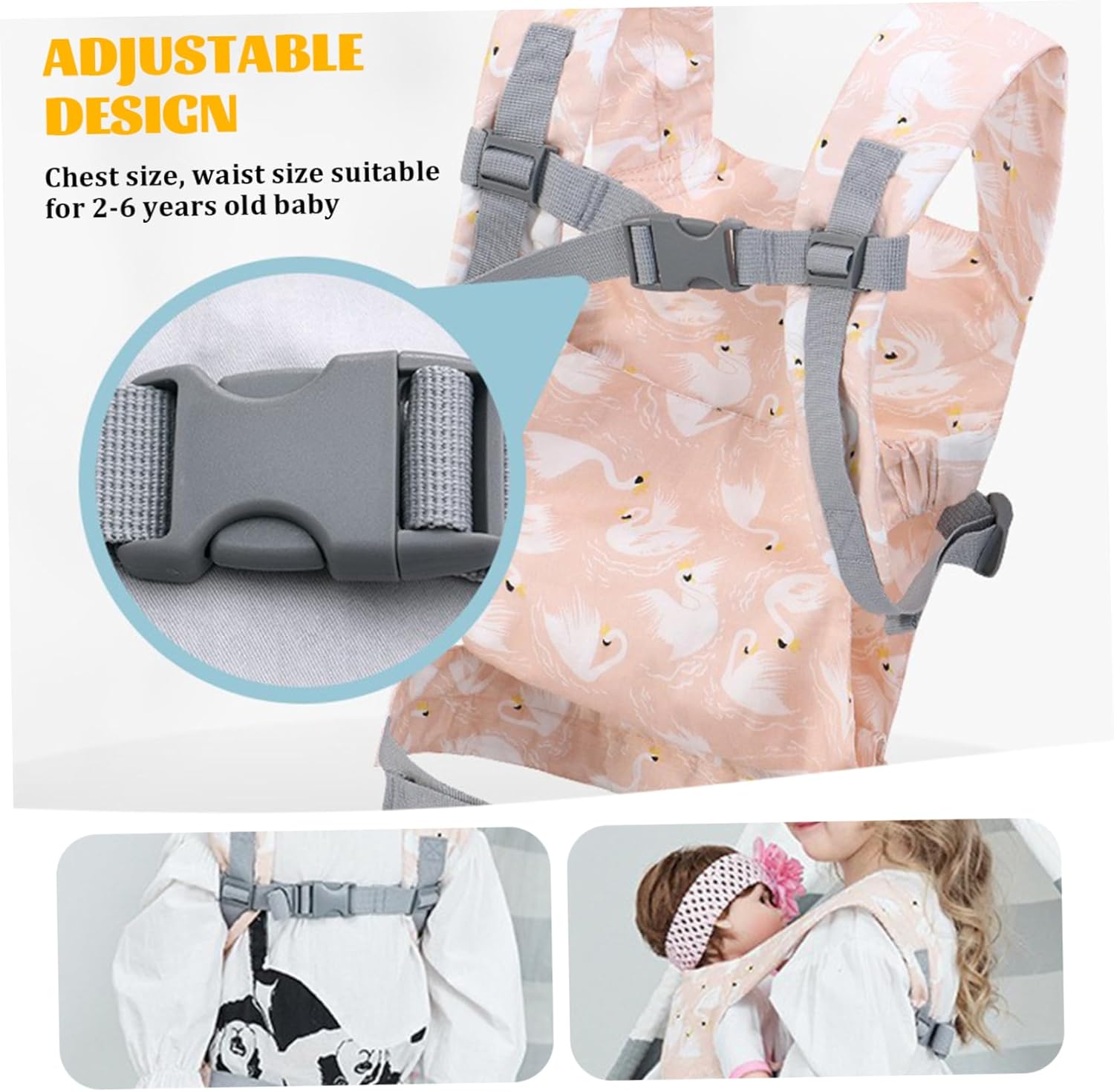Materiali sicuri: realizzato con materiali di cotone di qualità, questo è progettato per un uso duraturo durante innumerevoli sessioni di gioco..Il suo design robusto garantisce che possa supportare una varietà di bambole e animali di peluche, fornendo un'opzione sicura e affidabile per il gioco attivo. Vestibilità comoda e regolabile: realizzato in morbido cotone, questo offre un'esperienza confortevole sia per i più piccoli che per le loro bambole..La fibbia regolabile garantisce una vestibilità sicura e personalizzabile, accogliendo i bambini dai 2 ai 6 anni durante la crescita. Design carino e floreale: il per bambole presenta un adorabile motivo floreale che fa appello all'immaginazione delle bambine..Il design affascinante aggiunge un tocco di fantasia al gioco, rendendolo un accessorio attraente per gli amanti delle bambole. Opzioni di trasporto versatili: progettato per il trasporto davanti e dietro, questo per bambole consente ai bambini di scegliere come vogliono giocare..Sia che preferiscano mostrare la bambola davanti o tenerla sulla schiena, questa flessibilità incoraggia il gioco di ruolo fantasioso. Promuove il gioco educativo: utilizzando il per bambole, i bambini possono impegnarsi in comportamenti educativi mentre prendono cura delle loro bambole o dei loro animali di peluche..Questo tipo di gioco migliora le abilità sociali e la responsabilità, contribuendo a favorire lo sviluppo emotivo nelle ragazze.