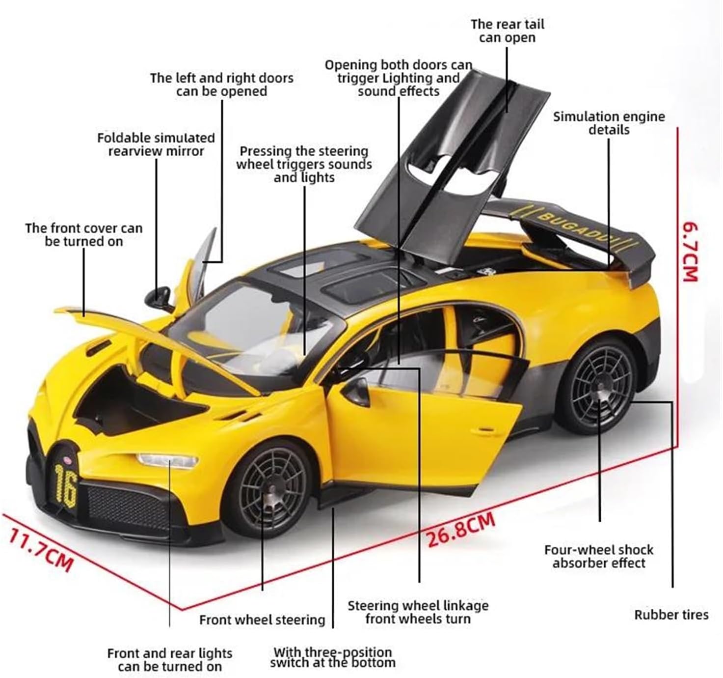 L'adesione del colore del materiale ABS è buona e viene utilizzato per parti colorate come i cruscotti delle auto; la superficie della vernice è strettamente combinata con il materiale, che non sbiadisce facilmente sotto la luce a lungo termine e contrasta con il colore metallico della lega di zinco per arricchire il livello visivo. Il contorno complessivo della carrozzeria è netto, le linee di demarcazione di ogni parte sono nette, le caratteristiche del contorno della parte anteriore, della carrozzeria e della parte posteriore sono evidenti e la forma complessiva è altamente riconoscibile, il che è in linea con le caratteristiche estetiche dell'auto originale. I modelli di auto possono soddisfare le esigenze cognitive dei bambini in materia di automobili, aiutarli a riconoscere i nomi e le caratteristiche di base dei diversi modelli, migliorare la loro comprensione delle auto durante il gioco e coltivare il loro interesse per i mezzi di trasporto. Un bellissimo ricordo: questo modellino di auto è realizzato con vernice spray colorata, delicata sulla pelle ed ecologica, con una riproduzione squisita e perfetta di tutti i dettagli dell'auto reale. Adatto agli appassionati di modellismo, da acquistare e collezionare, come decorazione per la casa, per auto e anche come regalo perfetto per esprimere il tuo cuore alla persona amata. Venite a trovarci: questo è un venditore di macchinine che opera nel settore da molti anni. I proprietari dei nostri negozi hanno un cuore infantile, pieno di amore, gentilezza e dolcezza. Buona qualità e prezzi bassi sono i punti di forza di questo negozio. Per qualsiasi domanda o esigenza, non esitate a contattarci.