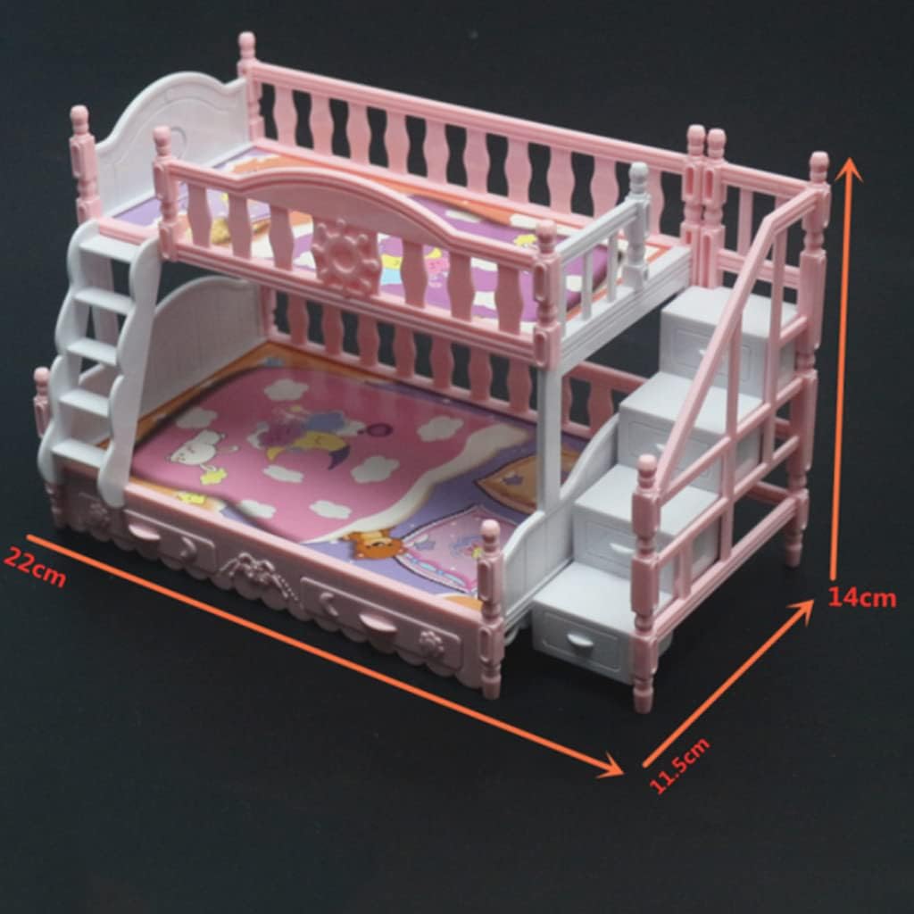Adatto per decorazioni domestiche, ruolo per giochi e anche per casa delle bambole o ruolo per decorazione di giochi. Questo è solo un modello giocattolo, non può essere utilizzato come un vero letto. Si prega inoltre di prestare attenzione ed evitare che i bambini mangino o si feriscano accidentalmente. Letto a castello in miniatura dal design vintage, i kit sono rimovibili, il che lo rende realistico e adatto alla decorazione della casa delle bambole. Realizzato in materiale plastico qualificato, non tossico con design liscio, resistenza all'usura, sicuro per far giocare i bambini. Con una buona stimolazione e formazione educativa per i bambini, dai loro la capacità cognitiva per gli accessori della casa delle bambole e promuovi la coordinazione occhio-mano e l'abilità pratica dei bambini.