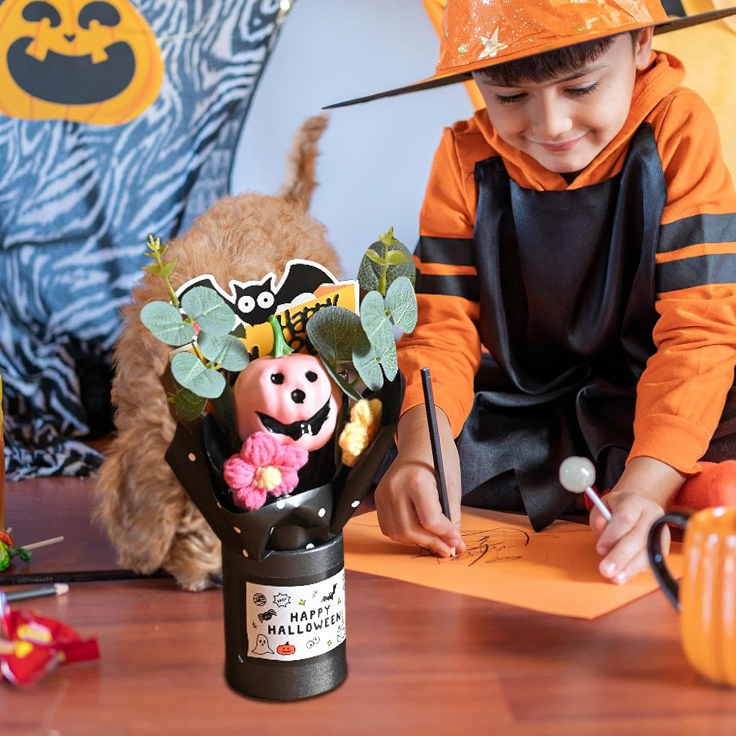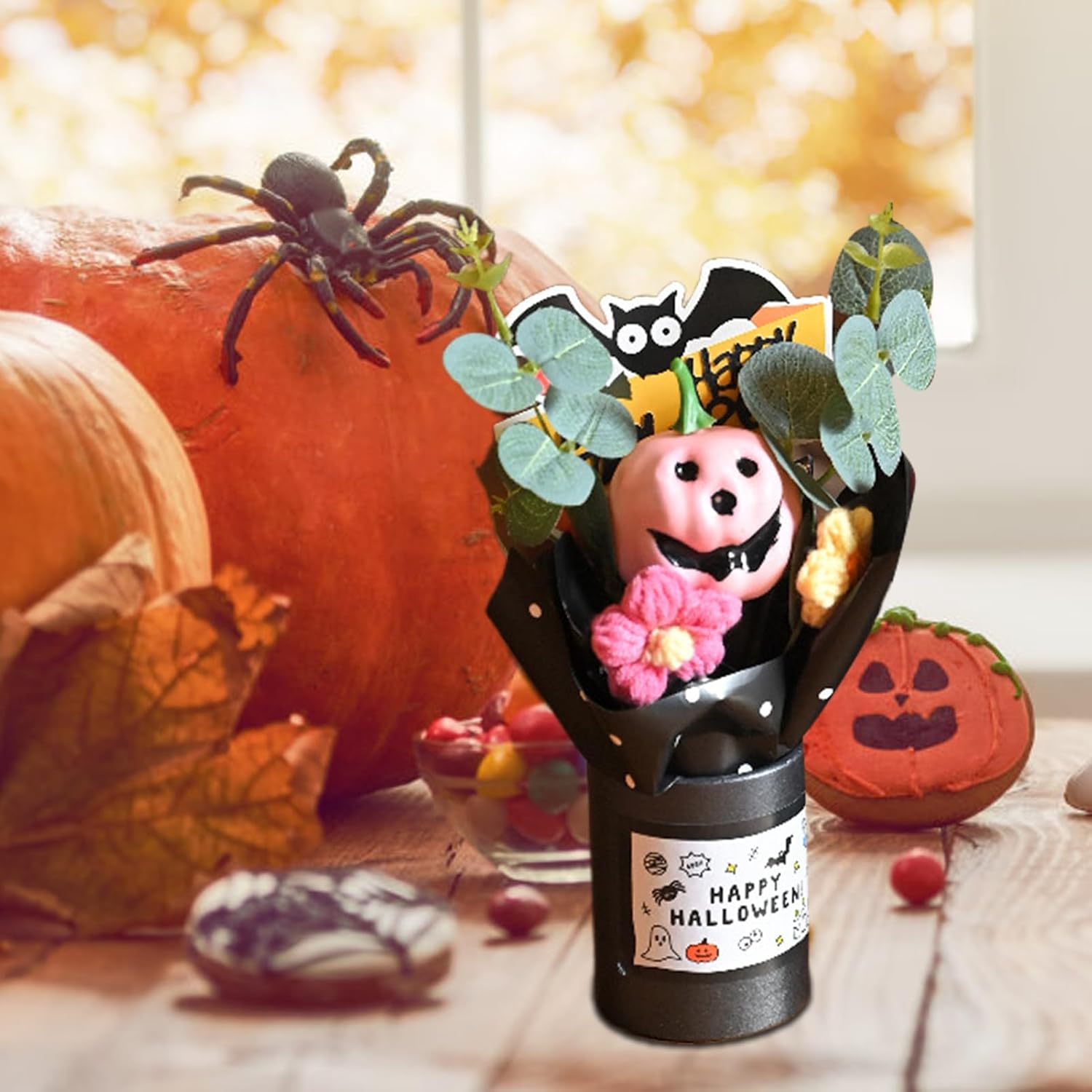 Misterioso stile festivo: il design ispirato alle zucche creative definisce questo mazzo di Halloween. Combina il tema festivo con il fascino stagionale, creando un mobile coinvolgente. Si integra perfettamente con le decorazioni esistenti su caminetti, credenze o angoli festivi con un'atmosfera armoniosa. Versatilità: decorazione essenziale per vacanze, luoghi di lavoro, librerie, aule e angoli domestici, aggiunge carattere stagionale attraverso un design funzionale e uno stile autunnale. Costruzione: materiali eccellenti forniscono una struttura robusta e resistenza all'usura, garantendo una lunga durata per molteplici usi nelle celebrazioni festive. Regalo speciale: progettato per celebrare le occasioni festive, questo bouquet di Halloween delizia gli ospiti e aggiunge calore e allegria alle riunioni stagionali, diventando un regalo memorabile dallo stile sofisticato. Decorazione elegante: l'eucalipto realistico lascia un sofisticato bouquet di Halloween arricchito con etichette a tema per un fascino festivo e un impatto visivo unico durante la stagione delle celebrazioni.