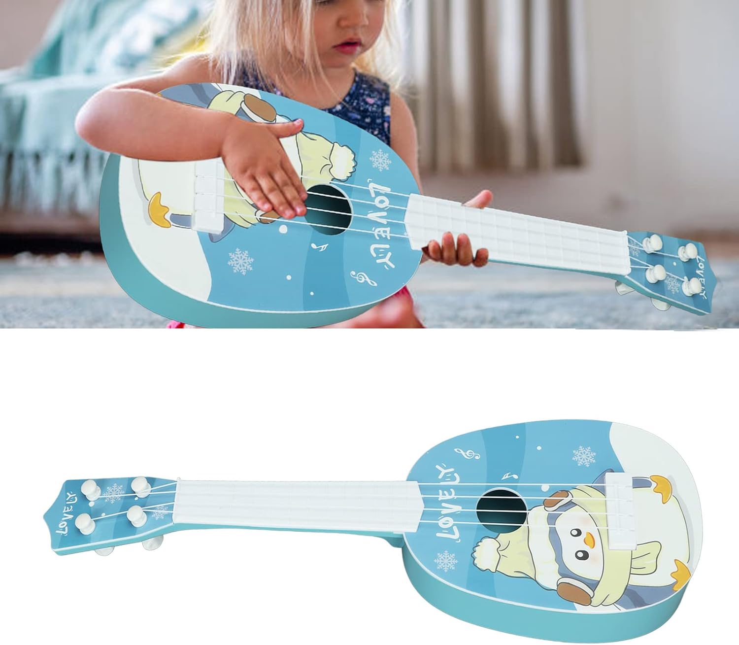 Per una costruzione affidabile: materiale: realizzato in plastica e ambientale. Caratteristica: robusto, indossato - resistente e offre prestazioni durature. Nome prodotto: per ukulele Marca: [Assumi un marchio qui, se nessuno dato, lascialo così com'è] per [marchio] Stringhe morbide: presenta stringhe morbide e lisce. Non causano alcun disagio durante l'uso e producono un suono piacevole e nitido. Per chitarra: performance eccellente Funzione: ben progettato con attenzione dettagliata. Quando le stringhe vengono tirate, i fori circolari vibrano l'aria interna per produrre un tono. Per gli strumenti musicali per bambini: caratteristica: illuminare i talenti musicali dei bambini e coltivare gradualmente il loro amore per la musica, contribuendo a sviluppare interessi e specialità. ideale: per i bambini, un design elegante e carino attraente per i bambini di tutte le età, rendendolo un .