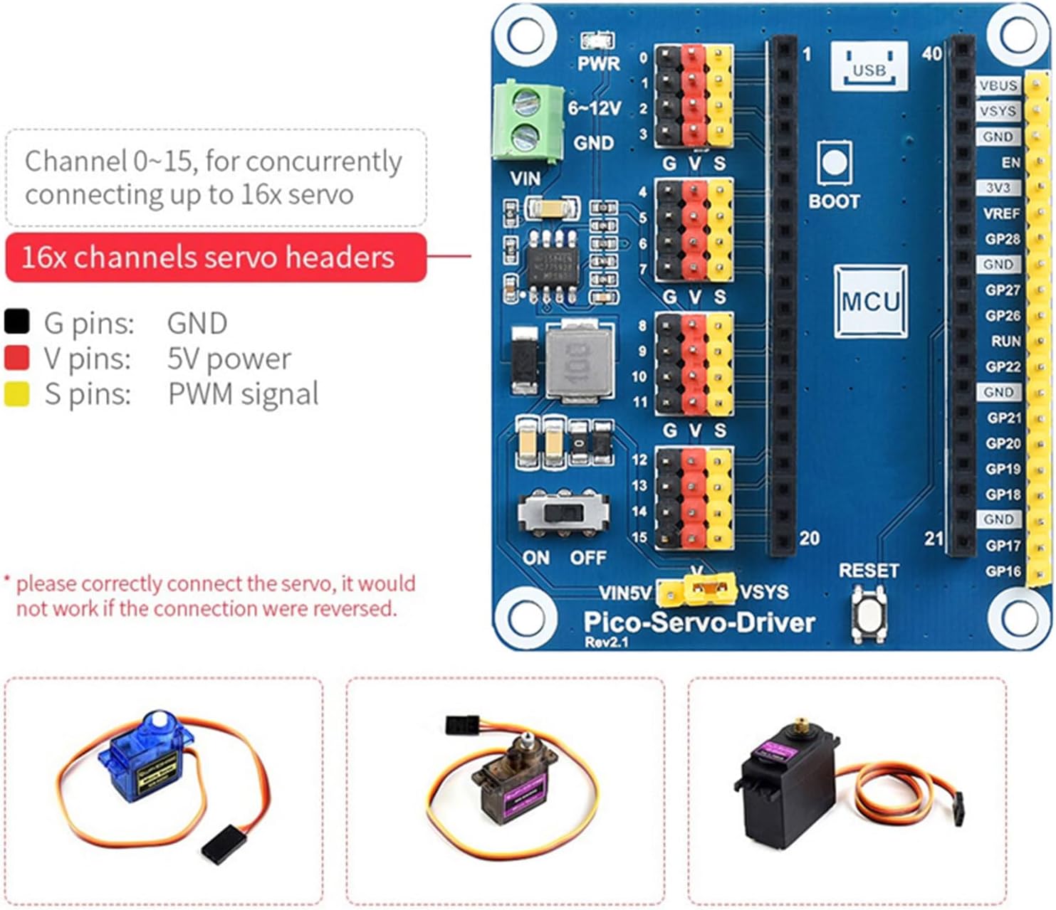 Facile espansione con perni inutilizzati di Servo standard supporta servo usato comune come SG90, Integra regolatore 5V, fino a 3A corrente di uscita, permette l'alimentazione della batteria dal VIN-terminale Uscite servo/PWM fino a 16 canali, risoluzione a 16 bit per ogni canale Standard per intestazione, supporti per schede serie