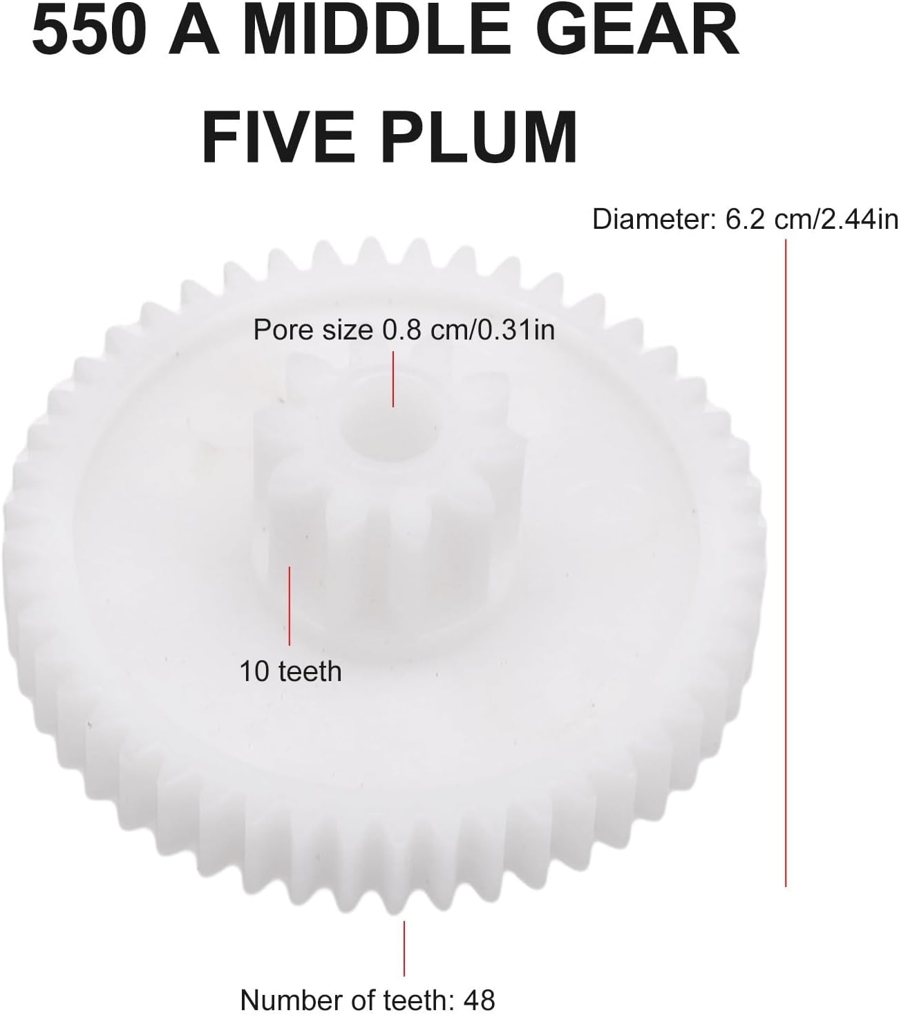 Materiale: realizzati in materiale, questi ingranaggi in plastica sono durevoli e durevoli. Compatibile con riduttori 550 e 390: progettati per auto elettriche per bambini con cambio 550 e 390, questi ingranaggi sono perfetti per la sostituzione o l'aggiornamento. Varie opzioni: scegli tra diversi modelli e set, tra cui 550 5P, 390 rapporti A/B e 550 rapporti A/B, per soddisfare le tue esigenze specifiche. Dimensioni precise: le dimensioni di questi ingranaggi sono misurate accuratamente e mostrate nelle immagini, per una vestibilità perfetta. La confezione include: scegli tra diverse opzioni di pacchetto, tra cui un set completo o una singola marcia, per una maggiore comodità nel tuo acquisto.