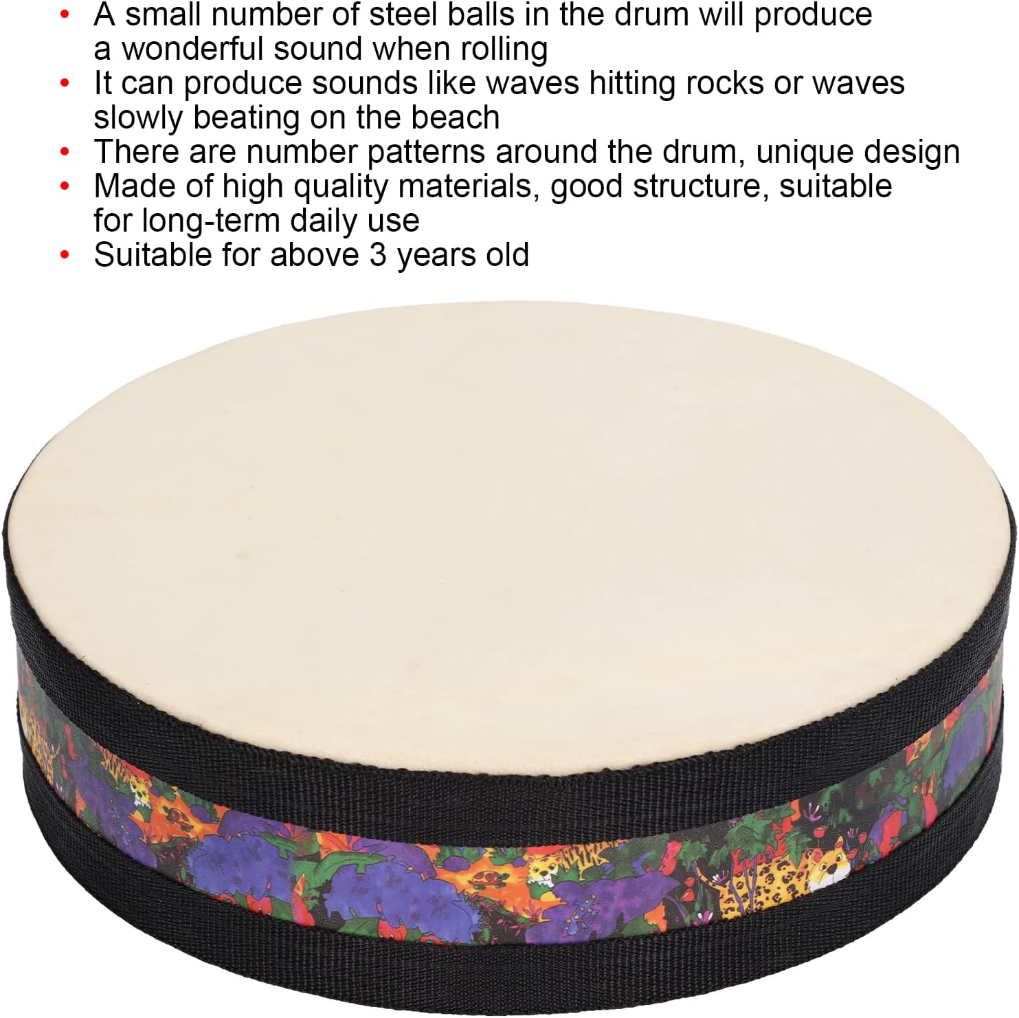 Per gli effetti sonori: le sfere in acciaio nel tamburo creano suoni meravigliosi durante il rotolamento, rendendolo un giocattolo eccellente. Per [Nome prodotto] di [marchio] Funzione: facile da usare. Basta tenere il tamburo con entrambe le mani e scuoterlo delicatamente per generare un suono che ricorda le onde che si schianta contro le rocce o lapping delicatamente sulla spiaggia. Design unico: per questo prodotto, presenta un design unico realizzato con una sofisticata tecnologia di produzione. Ci sono schemi numerici attorno al tamburo. Nome prodotto: per tamburo, marchio: [Sostituisci con il marchio effettivo] Materiale: realizzato con materiali di alta qualità, garantendo una buona struttura per un uso quotidiano a lungo termine. Nome prodotto: per i bambini Marca: [Assumi un marchio qui, se nessuno dato, possiamo semplicemente usare un segnaposto] per [marchio segnaposto] Descrizione: Scenario di utilizzo: adatto a bambini di età pari o superiore a 3 anni, ideale come per la giornata o i compleanni per bambini.