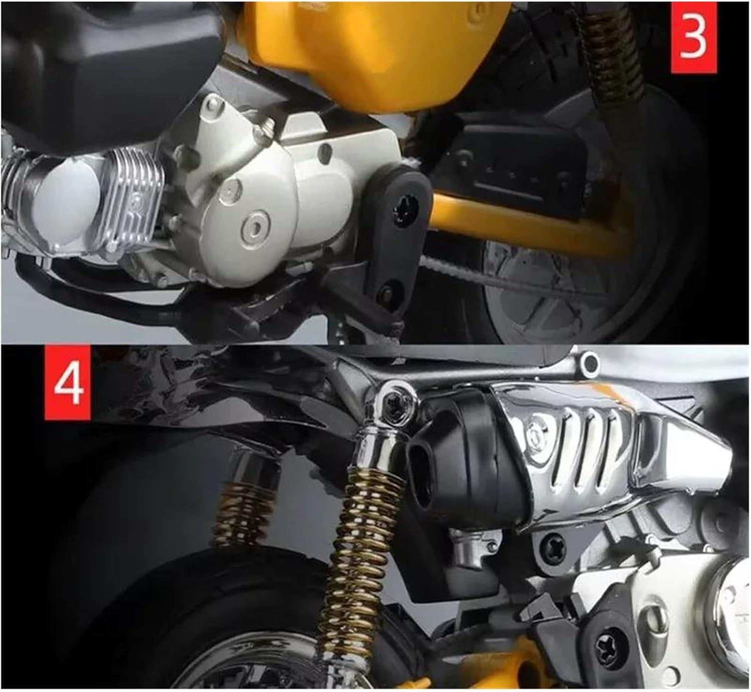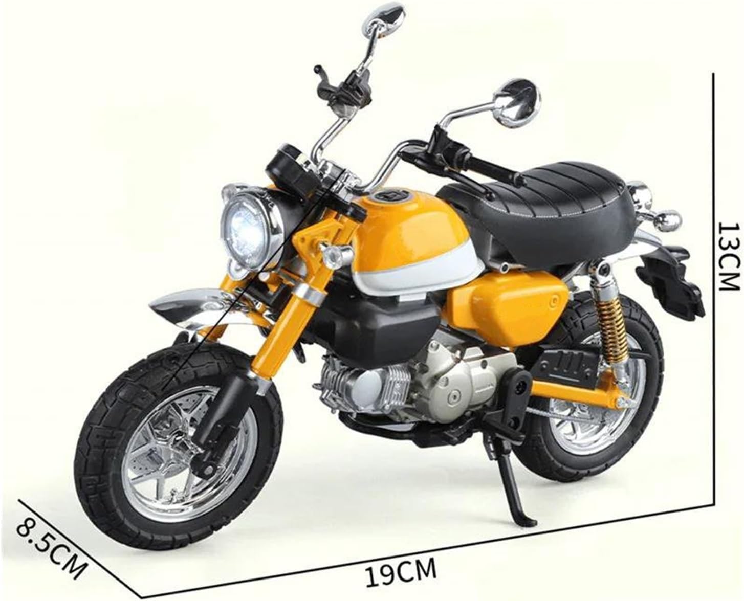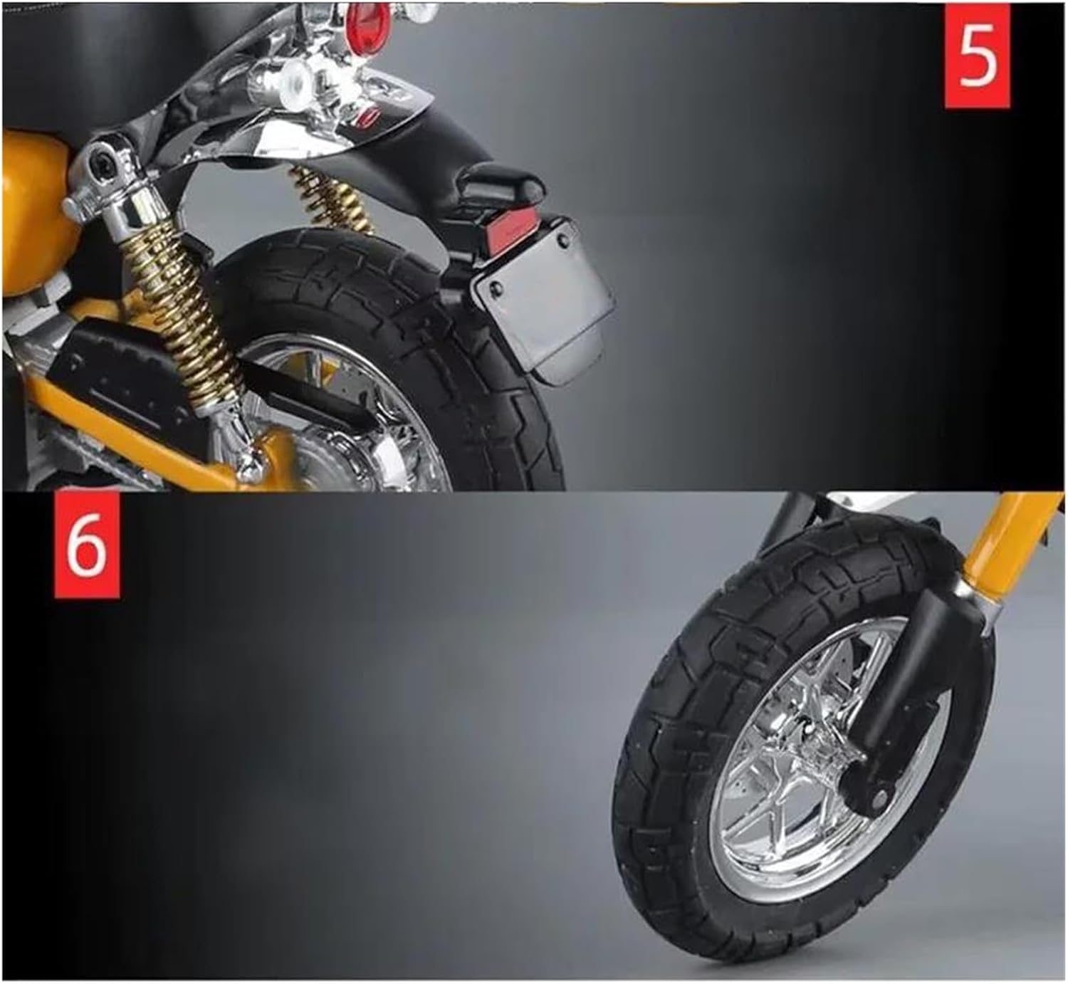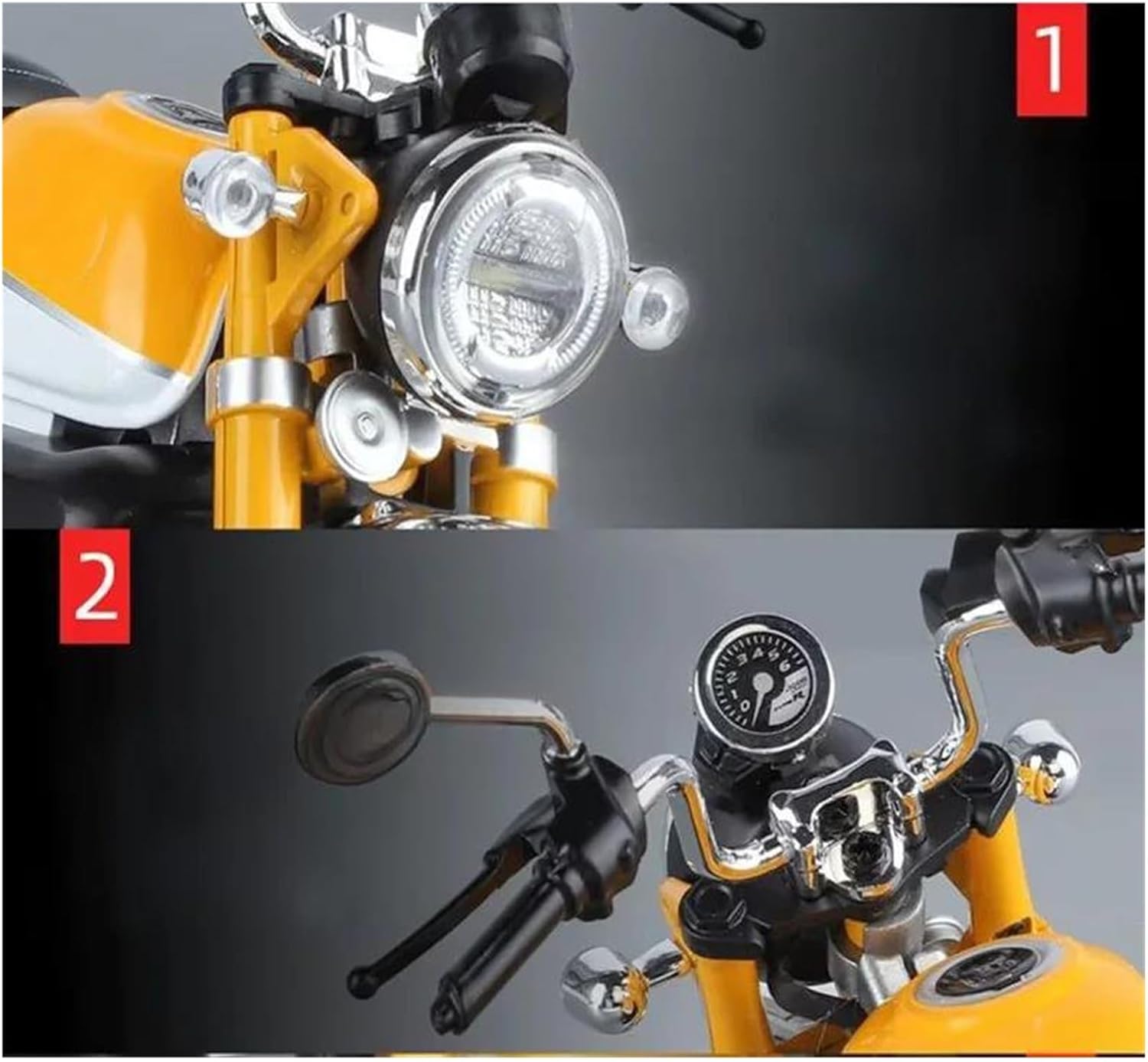 Realizzato con materiali resistenti e durevoli, resistenti all'usura e anticaduta, dall'aspetto raffinato e perfetto. Conosciuti per la loro fattura e durevolezza, questi modellini di auto pressofusi presentano dettagli realistici e verniciature vivaci, rendendoli perfetti per collezionisti, pezzi da esposizione e molto altro. Dettagli raffinati, come la ruota anteriore girevole, aumentano ulteriormente il realismo e il fascino della motocicletta. L'eccellente abbinamento dei colori esalta l'aspetto estetico del modello di motocicletta, mentre i dettagli realistici e la simulazione proporzionale lo rendono perfetto per la decorazione di collezioni. Durante il processo produttivo, effettuiamo costantemente test per garantire la qualità del prodotto. Per qualsiasi domanda, non esitate a contattarci.