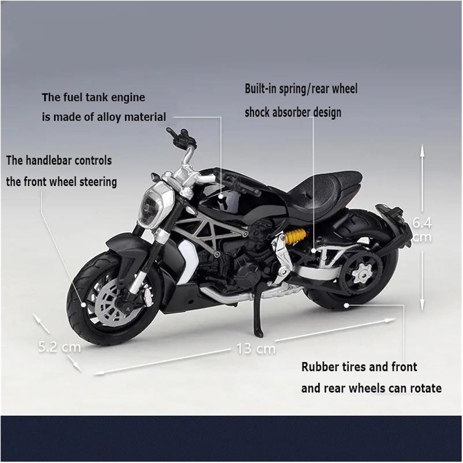 Realizzato in metallo pressofuso e plastica finemente lavorata, presenta un motore splendido, un cofano splendidamente riprodotto e finiture e verniciatura eccezionali. Guida su pneumatici in gomma scorrevoli. La sua ambientazione dettagliata ti farà battere forte il cuore quando la vedrai per la prima volta. Il modello compatibile con i modellini di motociclette ne riproduce fedelmente l'aspetto e i dettagli. La ruota anteriore può ruotare con la maniglia. La ruota anteriore può ruotare in modo flessibile e le ruote anteriori e posteriori simulano l'effetto di assorbimento degli urti. L'eccellente abbinamento dei colori esalta l'aspetto estetico del modello di motocicletta, mentre i dettagli realistici e la simulazione proporzionale lo rendono perfetto per la decorazione di collezioni. Durante il processo produttivo, effettuiamo costantemente test per garantire la qualità del prodotto. Per qualsiasi domanda, non esitate a contattarci.