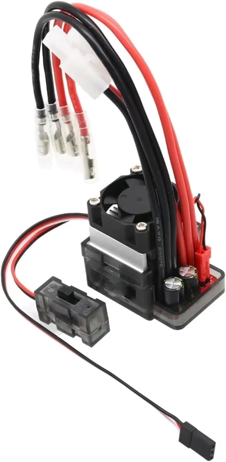 Materiale: l'ESC RC è realizzato con materiali speciali, che garantiscono un'elevata resistenza alla corrente e alla dissipazione del calore, ed è fissato saldamente; Caratteristiche: buona efficienza di dissipazione del calore, protezione dal surriscaldamento, protezione dalla perdita del segnale dell'acceleratore, Per forte capacità anti-interferenza, regolazione automatica della Per corsa dell'acceleratore, facile da usare; Installazione: facile da installare e utilizzare, regolazione automatica della Per corsa dell'acceleratore, regolazione automatica della posizione neutra dell'acceleratore, design compatto, nessuna necessità di modifiche, molto comodo da usare; Progettato per gestire condizioni complesse come fango e acqua, offre un controllo preciso della coppia senza vibrazioni durante le salite a bassa velocità, offrendo al contempo una potenza stabile ad alte velocità, bilanciando prestazioni competitive e praticità; Servizio post-vendita: offriamo un sistema di assistenza ""doppia garanzia"", che combina supporto tecnico e risoluzione dei problemi, inclusa la guida online al debug 24 ore su 24, per rispondere in modo completo a qualsiasi problema degli utenti;