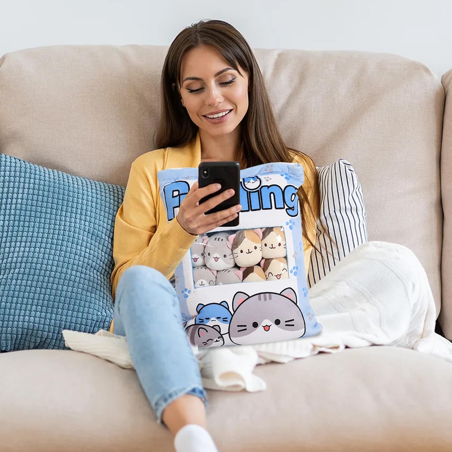 Design a forma di borsa per snack: questo in peluche presenta un design creativo a forma di borsa per snack, che rappresenta il modello del gatto in modo meraviglioso e contiene 8 figurine di gatto in peluche. La borsa per gli snack è rimovibile e i bambini adoreranno queste mini figurine di gatti. Adorabile e affidabile: progettato come un per snack per gatti e creativo, questo morbido si distingue per il suo adorabile aspetto da cartone animato e la sua espressione , che lo rendono un'aggiunta irresistibile all'arredamento della casa di ogni amante dei gatti. Pregevole fattura: goditi la qualità eccellente con il nostro per snack per gatti caratterizzato da pregevole fattura e cuciture accurate. Progettato per un tocco accogliente, è come per animali. Nessun filo inutile o punto allentato, aggiunge design e comfort al tuo divano, letto o sedia. Morbido e delicato: sperimenta un comfort morbido come mai prima d'ora con questo per snack per gatti realizzato in materiale peluche delicato sulla pelle e imbottitura in cotone. È delicato sulla pelle e garantisce ogni volta un'esperienza di confortevole. ovunque: goditi il fascino e accogliente di questo per snack per gatti in più scene. Dal divano del soggiorno alla camera da letto, all'auto, al dormitorio o all'appartamento, questo versatile e adorabile peluche a forma di animale si adatta a qualsiasi spazio.