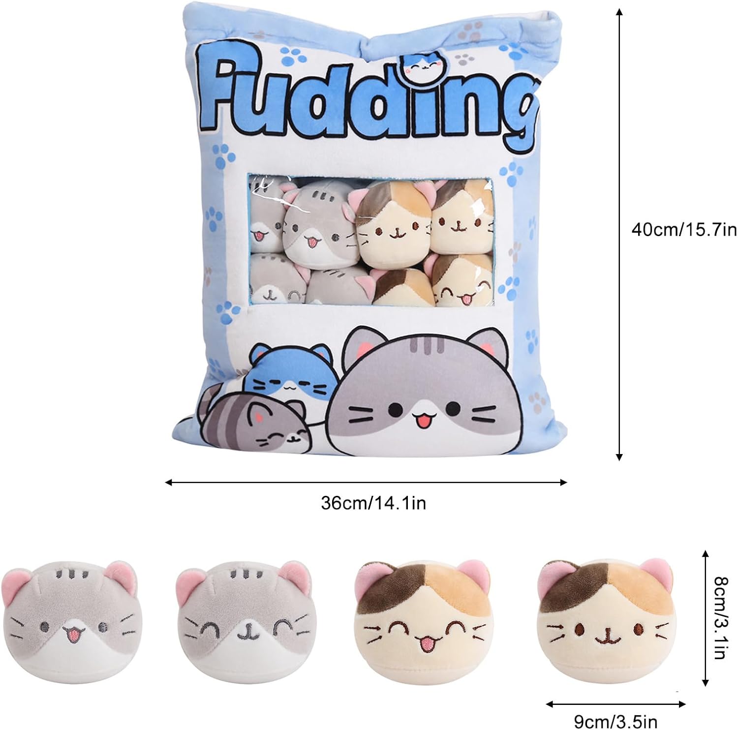 Cuscino per snack: questo cuscino di peluche con motivo gatto presenta un design creativo della borsa per snack e contiene 8 personaggi di peluche di gatto. Il sacchetto per snack è rimovibile, le mini statuette di gatto possono anche servire come giocattoli. Creativo e adorabile: questo cuscino in peluche ha un design creativo in stile cartone animato e una vivida espressione di un motivo di gatto, che lo rende un regalo perfetto per gli amanti dei gatti o un'accogliente aggiunta al tuo arredamento. Pregevole fattura: goditi la qualità eccellente con il nostro cuscino per snack per gatti, caratterizzato da pregevole fattura e cuciture pulite. Progettato per un tocco accogliente, è perfetto come cuscino per animali domestici. Niente fili inutili o punti sciolti, aggiungendo più design e comfort al tuo divano, letto o sedia. Comodo e inodore: realizzato in materiale felpato delicato sulla pelle e imbottitura in cotone, questo cuscino per snack per gatti è un peluche morbido e accogliente che ti piacerà coccolare. Adatto per ogni occasione: aggiungi un tocco di carinezza a qualsiasi stanza della tua casa. Questo cuscino per snack per gatti è versatile e accogliente, rendendolo un complemento perfetto per il vostro soggiorno, camera da letto, auto, dormitorio o appartamento.