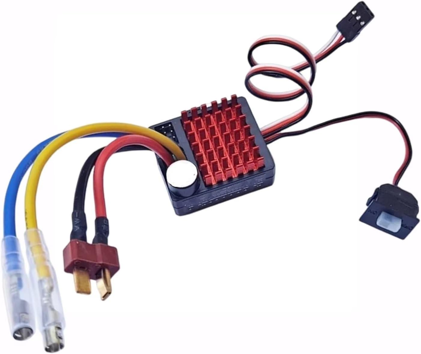 Materiale: il regolatore di velocità elettronico utilizza materiali speciali per la dissipazione del calore, per una protezione dagli schizzi, robusto e affidabile, una buona efficienza di dissipazione del calore e un lungo servizio; Caratteristiche: protezione da bassa tensione della batteria per interruzione, protezione da surriscaldamento, protezione dalla perdita del segnale dell'acceleratore, impermeabile, lunga durata; Installazione: Anche l'installazione è molto comoda, basta collegarsi all'alimentazione del ricevitore, con istruzioni chiare, design intuitivo, l'installazione è semplice; Progettato per gestire condizioni complesse come fango e acqua, offre un controllo preciso della coppia senza vibrazioni durante le salite a bassa velocità, offrendo al contempo una potenza stabile ad alte velocità, bilanciando prestazioni competitive e praticità; Servizio post-vendita: offriamo un sistema di assistenza ""doppia garanzia"", che combina supporto tecnico e risoluzione dei problemi, inclusa la guida online al debug 24 ore su 24, per rispondere in modo completo a qualsiasi problema degli utenti;