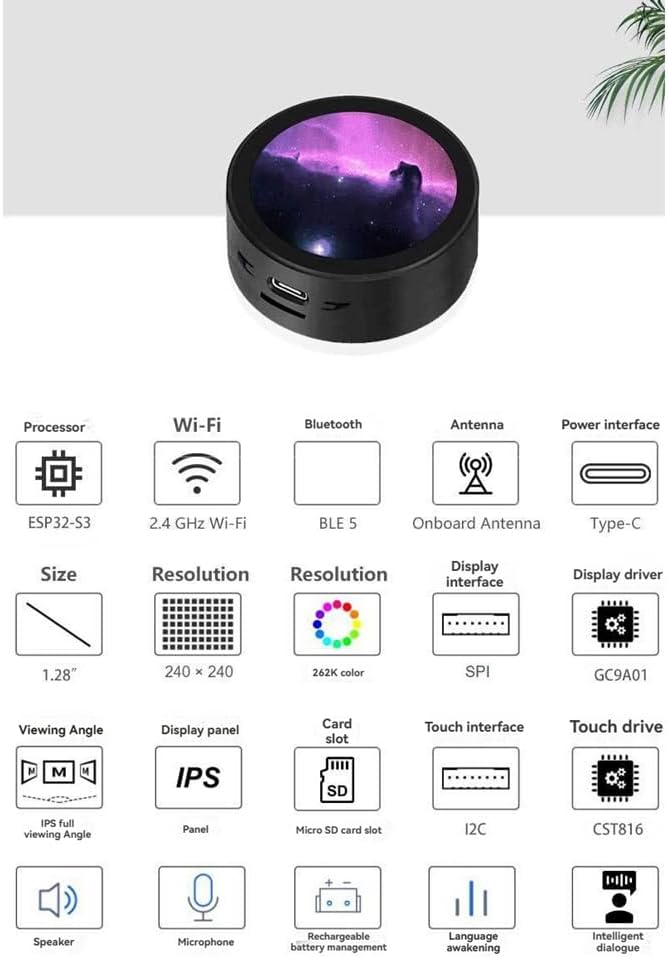 1. Funzionalità di intelligenza artificiale avanzate: dotato di XiaoZhi AI per un'interazione vocale , ideale per lo sviluppo di applicazioni intelligenti. 3. Display ad alta risoluzione: dotato di un touchscreen LCD rotondo da 1,28 pollici, che offre immagini nitide e vivide per un'esperienza utente intuitiva 2. Potente processore ESP32-S3: garantisce prestazioni elevate ed elaborazione efficiente per calcoli complessi e multitasking 4. Compatto e versatile: perfetto per gli appassionati del DIY e gli sviluppatori che desiderano creare progetti o prototipi interattivi con integrazione di intelligenza artificiale.
