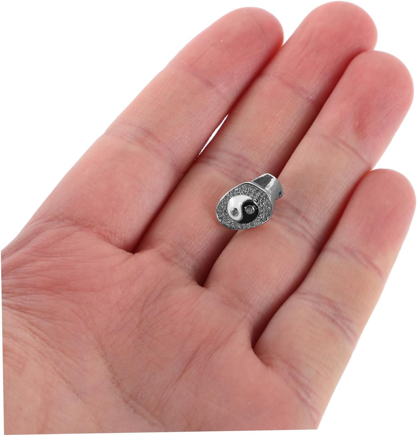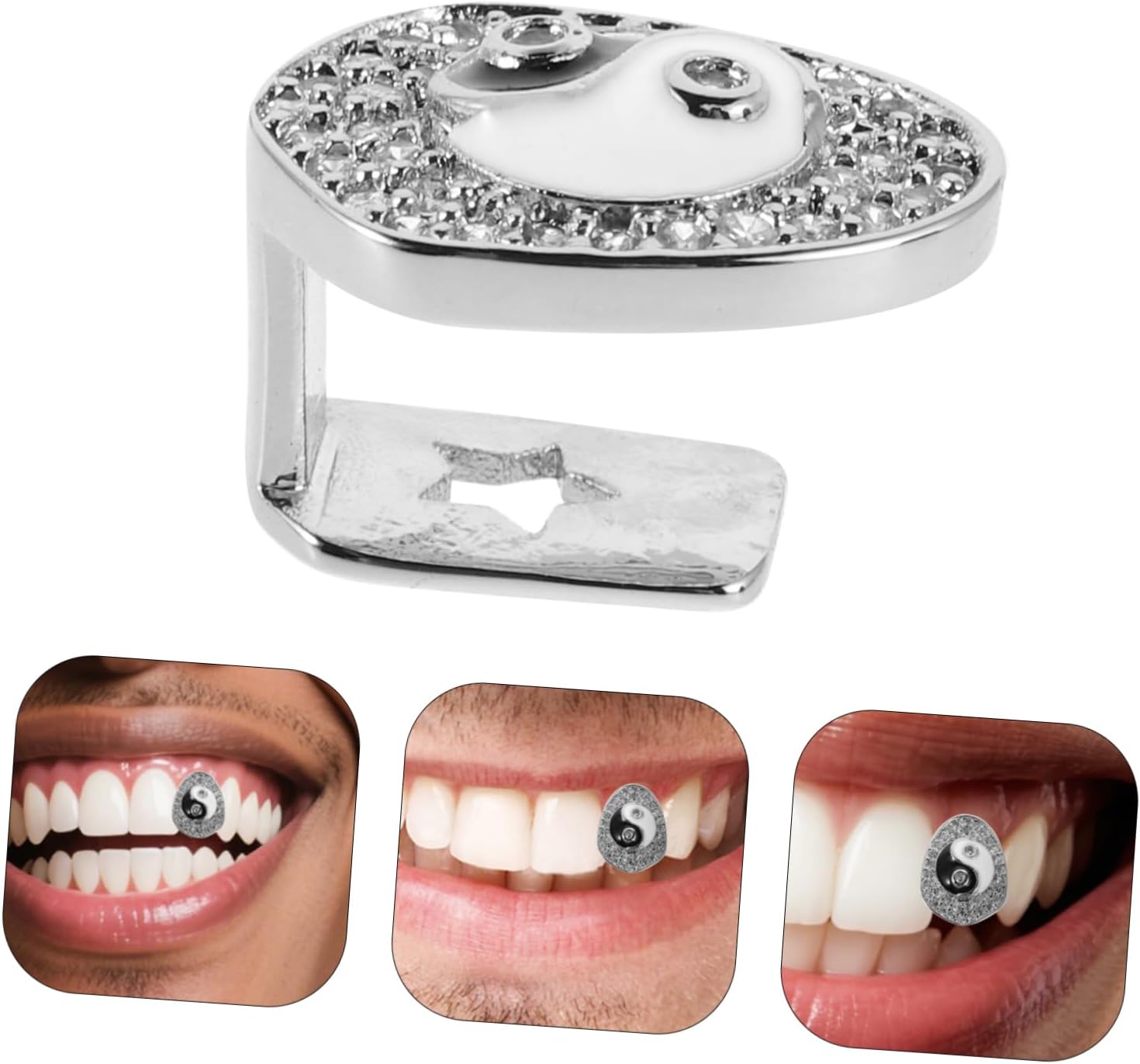 dei pacchetti 1 x griglia argentata, 1 x clip Caratteristiche - Decorazioni in cristallo : il design aggiunge un tocco di brillantezza, valorizzando l'aspetto generale dei tuoi gioielli per denti. -(clip)Dimensioni: 5,50X1,20X0,70 cm/2,16X0,47X0,28 pollici gioielli hip hop -(griglia) Dimensioni: 1,30X1,00X0,90 cm/0,51X0,39X0,35 pollici bling - Materiali: realizzato in rame resistente e tempestato di cristalli, questo copridenti garantisce vestibilità e comfort come accessorio per travestimenti. - Colore: Accessori cosplay argento -Materiale: griglie superiori in rame + diamanti dorati -Design all'avanguardia: il copricapo singolo Tai Chi Bagua è un accessorio alla moda che mette in risalto il tuo stile unico per le griglie per la bocca hip hop. -Accessorio di moda versatile: adatto per la moda hip hop e vari eventi, questo copridenti può essere abbinato a una varietà di outfit con griglie scintillanti - Cappuccio a dente singolo: il design unico del singolo dente offre un ciondolo hip hop dall'aspetto distintivo. Descrizione della merce denti placcati in oro Fai una dichiarazione con questo accattivante copridenti, progettato con un motivo Bagua e ricoperto di pietre scintillanti.copridenti Il suo design unico ti assicura di distinguerti in qualsiasi .copridenti singolo Questo accessorio hip hop è per aggiungere un tocco di glamour al tuo outfit, che tu a una festa, a un concerto o semplicemente fuori con gli amici