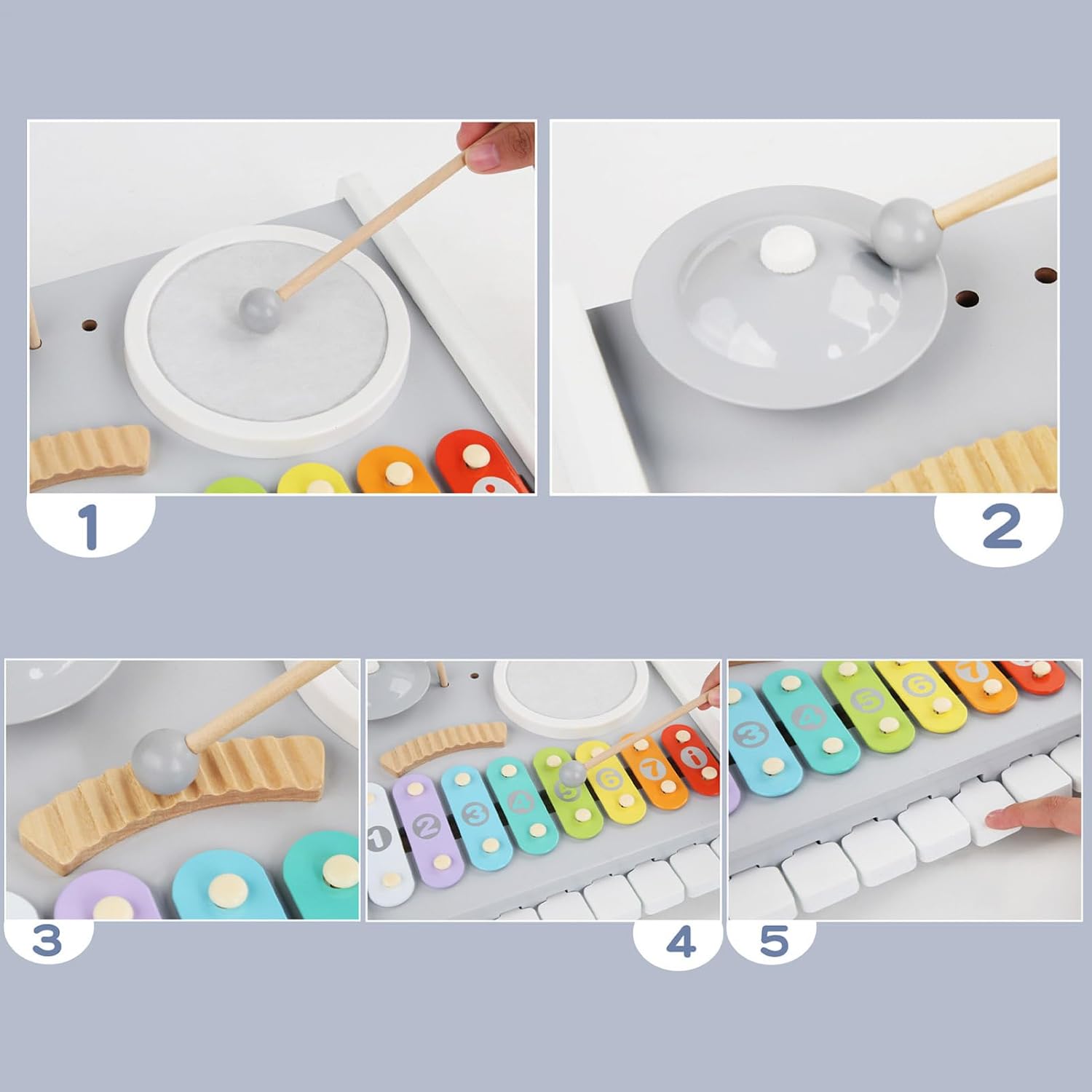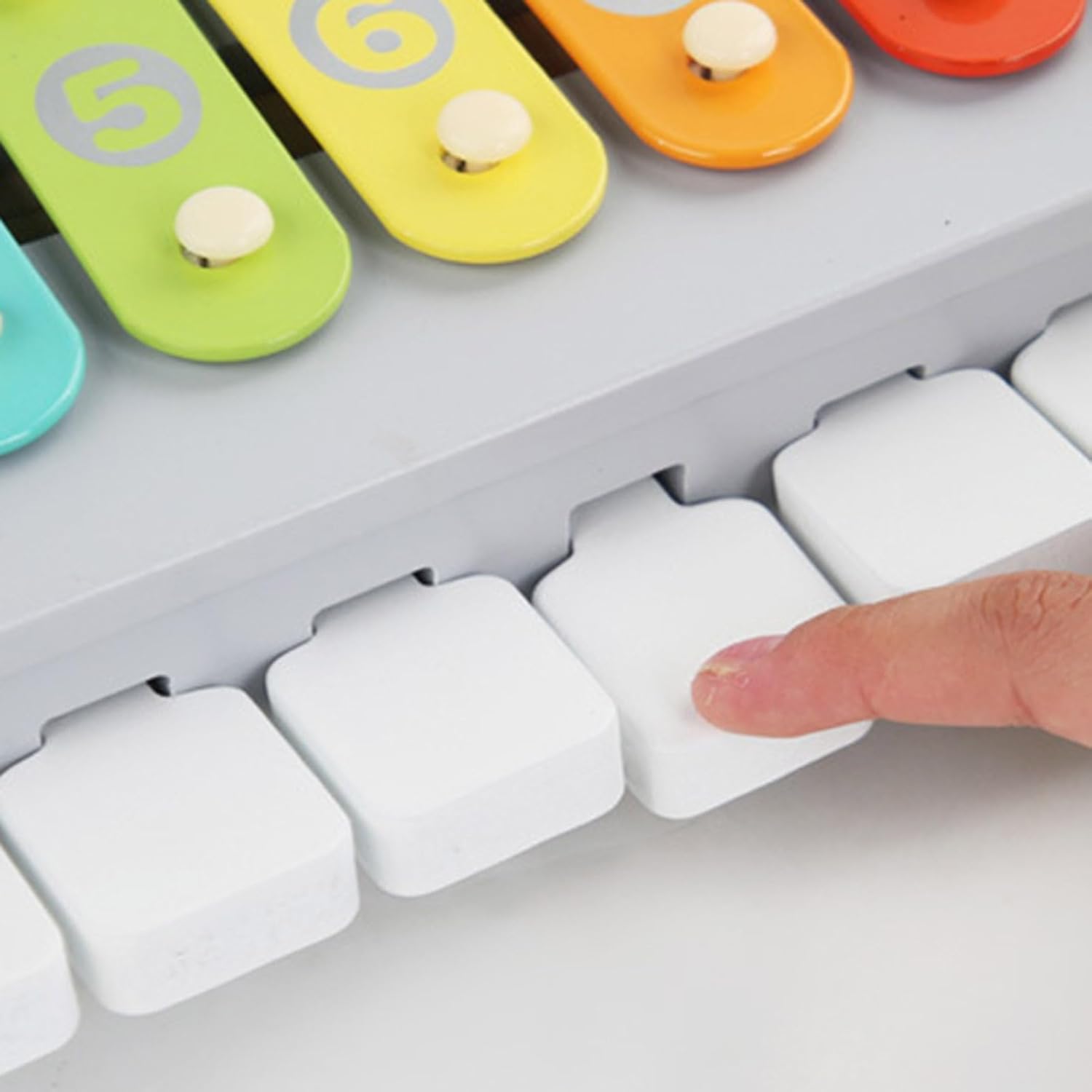 Legno naturale e superfici liscie: questo xilofono bambino è realizzato in legno naturale, offrendo superfici lisce che resistono alle macchie e all'accumulo di sporco, semplificando la manutenzione fornendo un'esperienza musicale sicura e coinvolgente per i giovani durante il gioco. Il materiale di qualità garantisce durata e comfort di utilizzo, promuovendo il risveglio musicale in vari ambiti di vita. Compagno di Gioco Ritmico Bambino: Questo xilofono è sviluppato per supportare le capacità di costruzione ritmica e l'apprezzamento musicale dei giovani, offrendo un metodo coinvolgente per migliorare la concentrazione e le capacità di ascolto. Trasforma il tempo di gioco in un'esperienza educativa e divertente, incoraggiando l'interazione e lo sviluppo armonioso attraverso la musica e il movimento. Gioco musicale interattivo: gli xilofoni dai colori vivaci consentono ai giovani di esplorare il suono in modo concreto attraverso l'associazione dei colori, favorendo così la percezione uditiva e le abilità cognitive durante le attività di gioco creativo. Che si tratti di interni o esterni, questo strumento incoraggia la partecipazione attiva e lo sviluppo dell'immaginazione durante i momenti di intrattenimento educativo. Miglioramento delle abilità motorie fine: Lo xilofono giocattolo aiuta a migliorare le abilità motorie fini quando le partecipano a giochi di battitura e percussione, promuovendo la crescita dello sviluppo e rafforzando la coordinazione occhio-mano. Durante le attività di gioco, esplorano la creazione di ritmi, che perfeziona la loro destrezza e precisione in un ambiente musicale divertente. Giocattolo musicale multifunzionale: combinando xilofono, tamburo e campanelle, questo xilofono consente un gioco musicale interattivo con molteplici esperienze sonore. Ideale per rafforzare l'apprendimento sensoriale e le divertenti interazioni di gruppo durante feste o asili nido, garantisce un intrattenimento educativo adatto ai giovani.