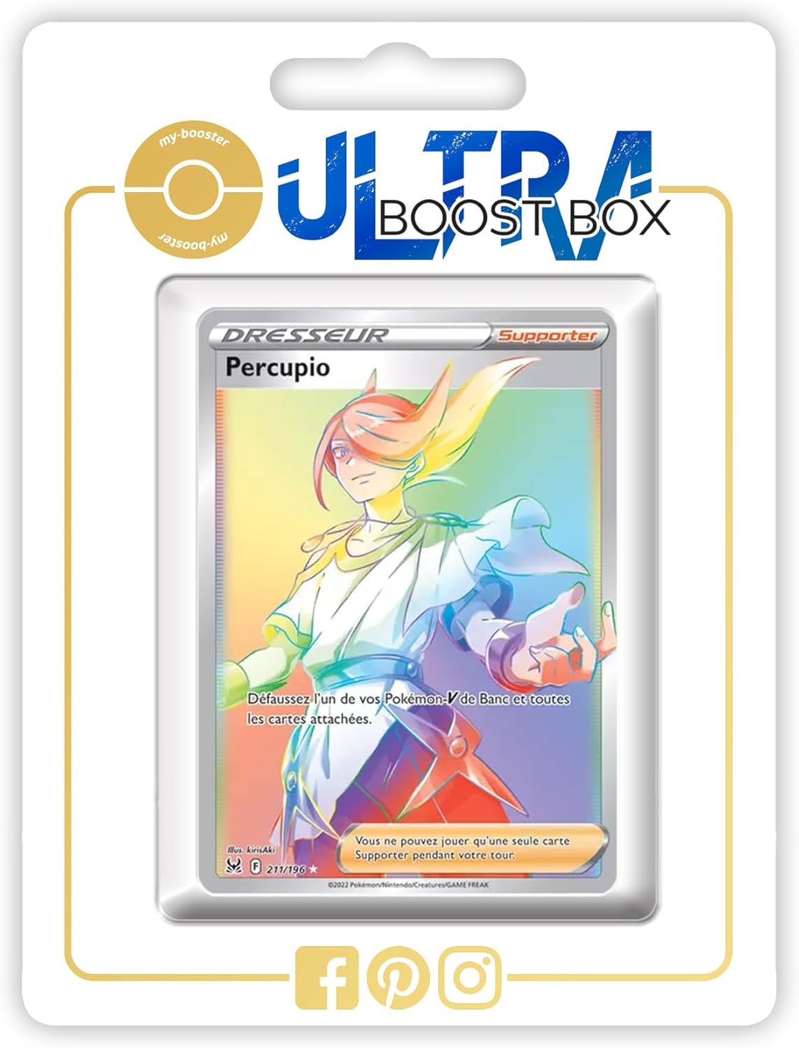 Trova i tuoi Pokémon preferiti nel tuo negozio amazon.fr/my-booster o facendo clic su "visita il negozio my-booster" sotto il titolo di questa scheda prodotto. Ogni box Ultraboost/Myboost contiene la carta principale evidenziata nella sua scheda prodotto + 9 carte Pokémon aggiuntive. Carte "The Pokemon Company" nuove e originali certificate - Questo set non contiene carte trainer/energia/duplicati. Alcune carte aggiuntive incluse potrebbero far parte di una serie Pokémon diversa dalla serie della carta principale di questo set. Approfitta della consegna gratuita a partire da 100€ e dell'UPS espresso gratuito a partire da 250€ di carrello spedito con my-booster!