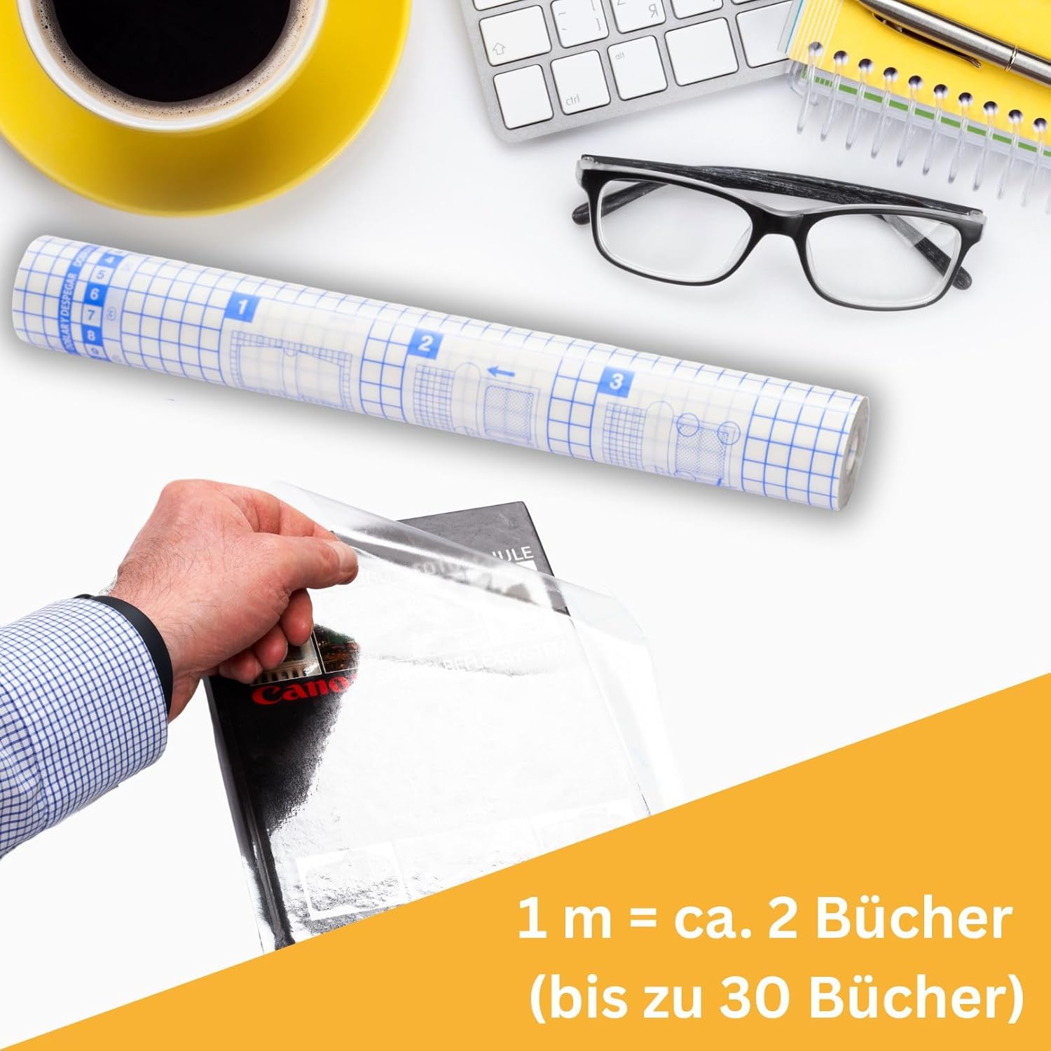 Per la natura: brevi vie di trasporto, meno emissioni di CO2, materiale ecologico e riciclabile in plastica PP (polipropilene), alta qualità, prodotto in Germania in modo sostenibile Caratteristiche forti: copertina rigida e resistente per libri su rotolo (15 m x 40 cm), spessore pellicola: 0,06 mm (60 my), busta trasparente trasparente, incolore, lucida, permanente, resistente agli strappi, all'acqua di qualità da biblioteca Facile da usare: ideale per inserire libri grazie alle linee a griglia sul lato della carta per un taglio preciso ed economico, adatto per circa 30 libri (1 m = circa 2 libri) Protezione perfetta: il protettore adesivo è un aiuto efficace per proteggere da graffi, sporco, polvere, umidità, pieghe, crepe, orecchie da asino, autentico per documenti Versatile: copertina robusta e flessibile (trasparente) per libri, quaderni, mappe, cataloghi, adatta per bambini giardino, presepi, scuola elementare, università, ufficio, biblioteca, archivi