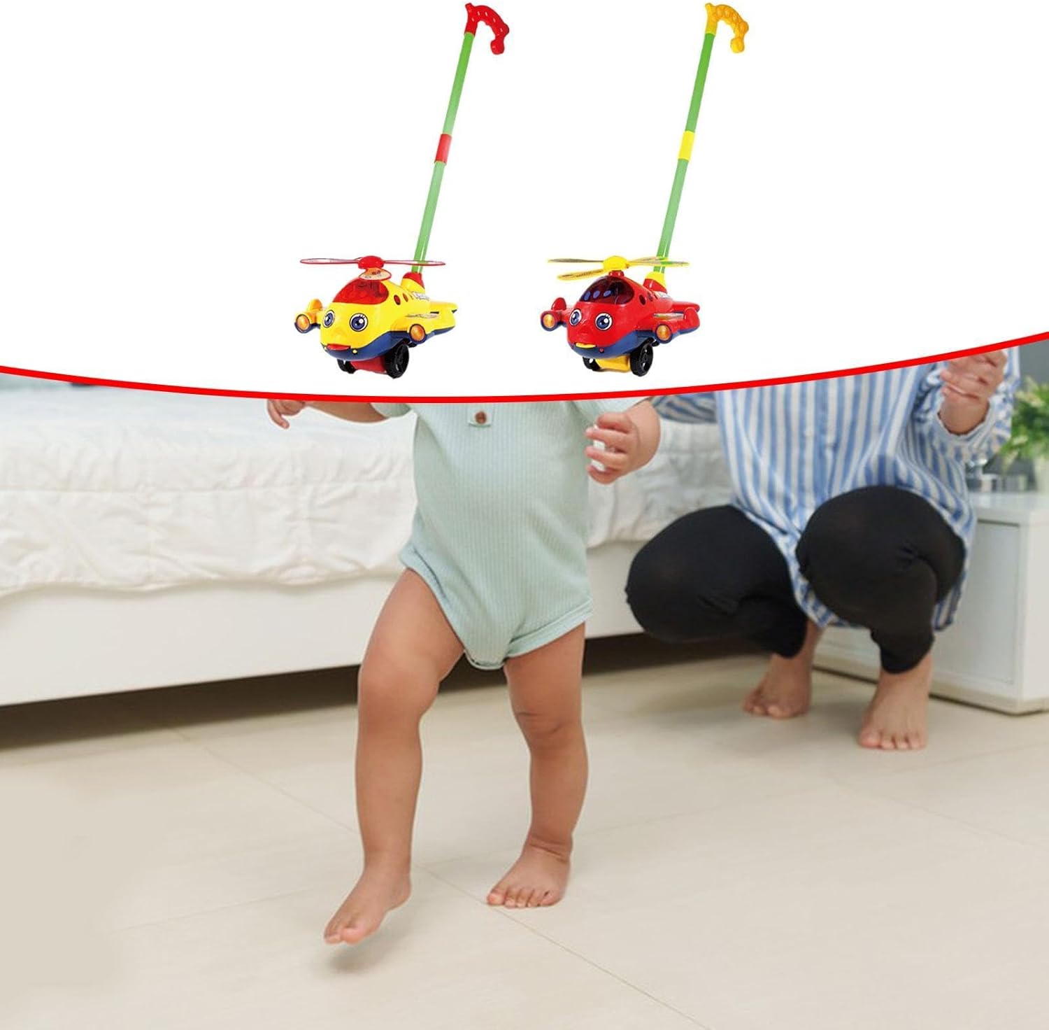 【Giocattolo per l'apprendimento precoce】: questo giocattolo a spinta è progettato per sviluppare l'immaginazione e la creatività dei bambini, migliorando al contempo la coordinazione occhio-mano e le capacità motorie. 【Design】: la maniglia del giocattolo a spinta può essere ruotata e regolata in base alle preferenze del bambino. Puoi facilmente regolare l'altezza e la direzione della maniglia in base alle esigenze del bambino. 【Materiale】: realizzato in materiale PP, questo giocattolo a spinta è robusto per un uso a lungo termine. 【Regalo】: il giocattolo da passeggio è un regalo ideale per i bambini, può attirare l'attenzione dei bambini e migliorare le loro capacità cognitive. 【Giocattoli per lo sviluppo dei bambini】: il giocattolo da passeggio a spinta e trazione è un ottimo giocattolo per lo sviluppo precoce che sviluppa l'apprendimento e la deambulazione dei bambini. La campana incorporata produce suoni piacevoli quando le ruote vengono spinte, aggiungendo più divertimento al tempo di gioco con questo coinvolgente dispositivo musicale.