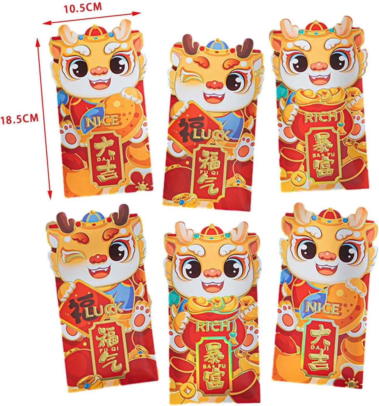 【Simbolico e significativo】: il colore rosso è un simbolo di fortuna e ricchezza nella cultura cinese, motivo per cui Hong Bao viene utilizzato durante il capodanno cinese e altri eventi celebrativi. Queste buste rosse sono di un rosso e incarnano questi significati di buon auspicio. 【Design speciale】: ricevere buste rosse durante il nuovo anno è un'antica usanza, con il colore rosso che simboleggia auguri e la buona fortuna per il prossimo anno. Queste buste non sono adatte solo per i festeggiamenti di Capodanno, ma sono apprezzate anche per compleanni e matrimoni. 【2024 Anno del Drago】: la confezione include 6 adorabili buste rosse in stile cartone animato 3D, perfette per l'Anno del Drago. Sono progettati unico e creativo, che li rende un modo divertente e festoso per fare regali durante il Capodanno cinese. 【Alta qualità】: le buste rosse per il Capodanno cinese sono realizzate in carta, resistenti e stabili. Lucky Money Pocket misura dimensioni perfette per contenere denaro o carte regalo. 【Tasche di carta festive】: durante il Festival di Primavera, è tradizione che genitori, nonni, parenti e persino amici intimi e regalino soldi in buste rosse alle più giovani. Queste buste rosse sono perfette per continuare questa tradizione.