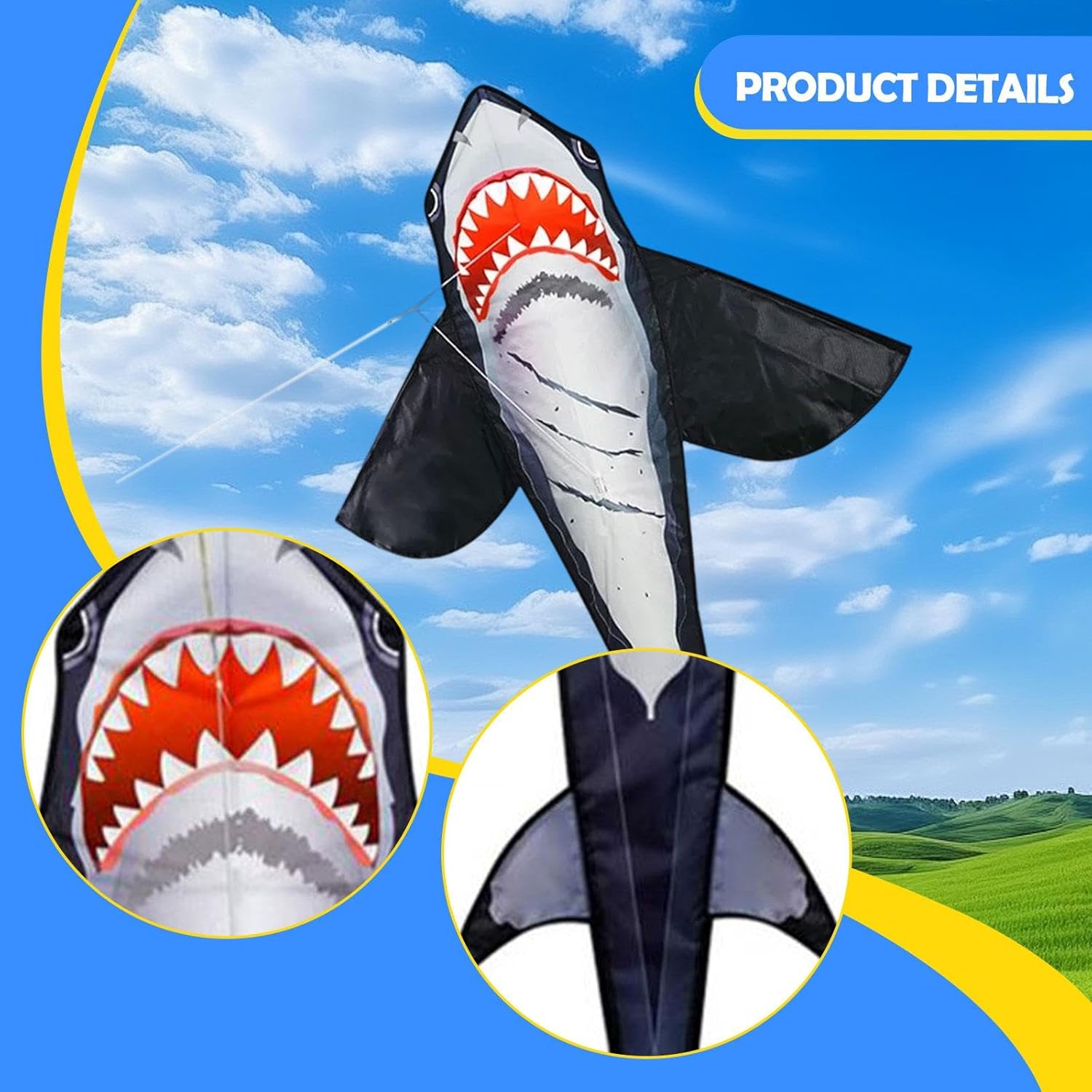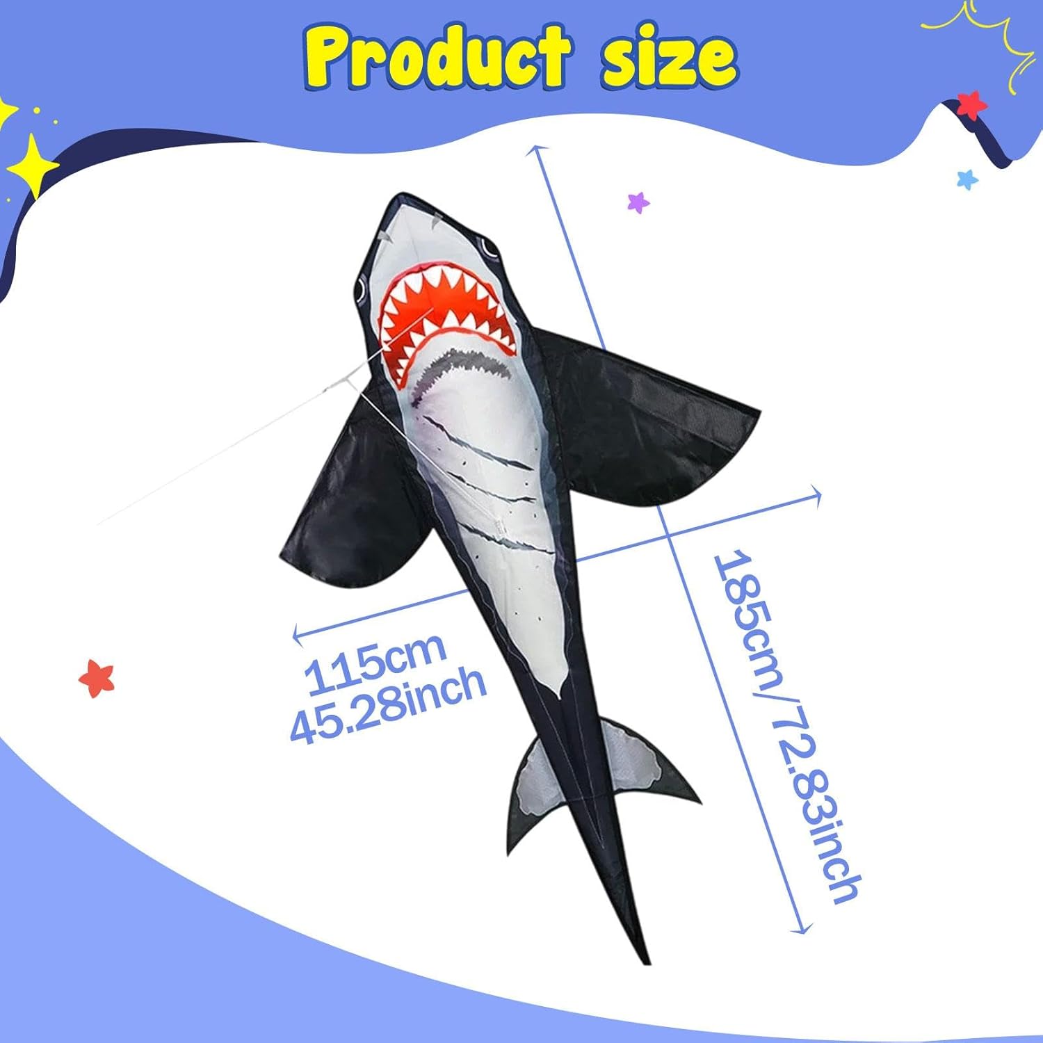 【Design dei cartoni animati】: l'aquilone a forma di animale dei cartoni animati è progettato con , con grandi occhi, accattivante, offrendo un ottimo modo per godersi l'attività fisica 【Facile da far volare】: con una larghezza ,28 pollici e una lunghezza complessiva di 72,83 pollici, questo aquilone Shark offre spettacolo impressionante nel cielo 【Occasione】: l'aquilone enorme è adatto per attività familiari e all'aperto, un ottimo regalo per tutte le età 【Tutte le età】: Questo aquilone Shark è perfetto sia per adulti che per bambini, adatto sia ai principianti che agli appassionati di aquiloni professionisti 【Materiale】: Realizzato in tessuto e asta in fibra di vetro, questo aquilone per bambini è costruito per resistere agli elementi, rendendolo adatto alle avventure all'aperto