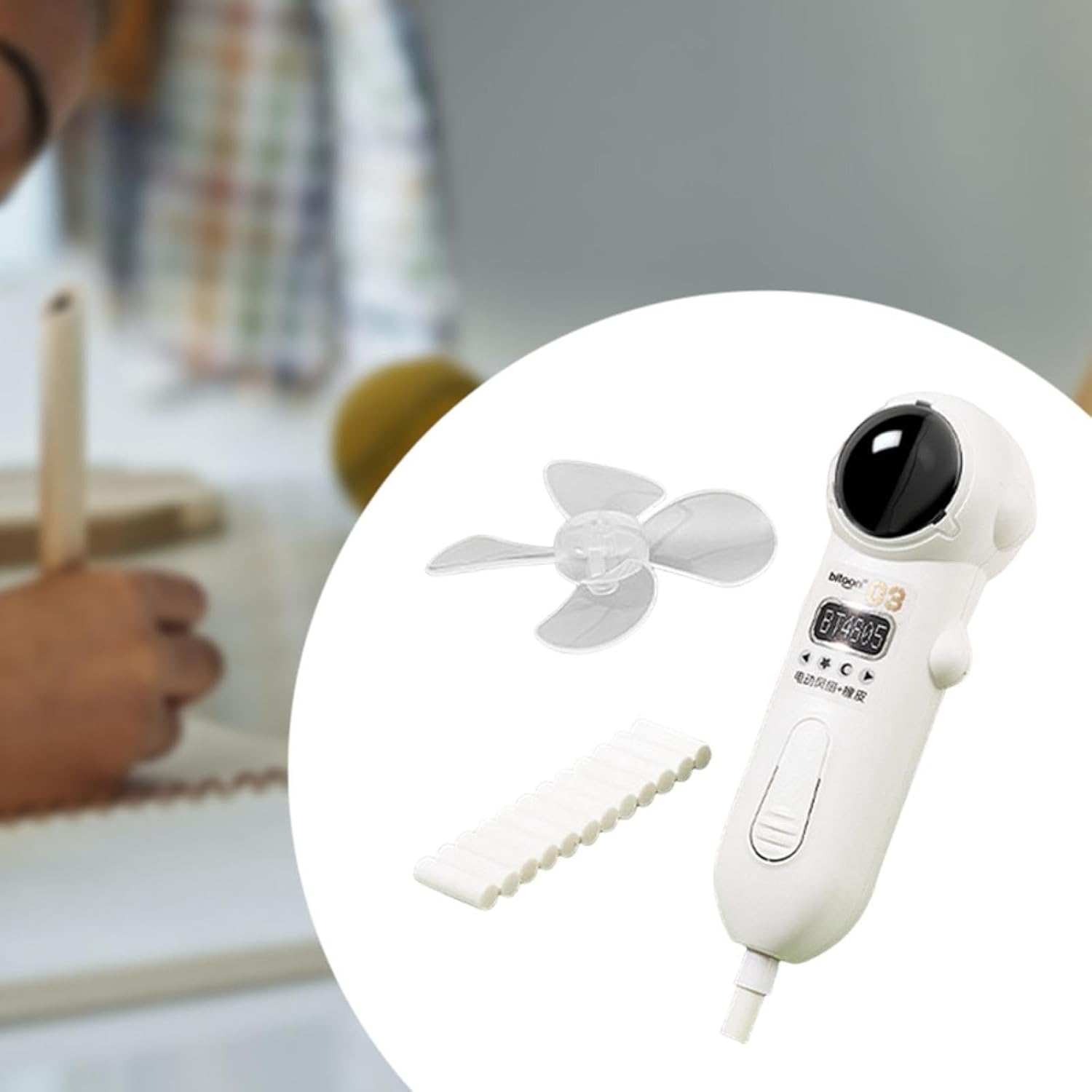 【Operazioni intuitive】: Basta premere per utilizzare la gomma per matita, rendendola comoda per correzioni rapide. Ideale per ottenere evidenziazioni e modifiche dettagliate. 【Applicazione】: La gomma elettrica è adatta per disegno, redazione, artisti, schizzi, studenti, ingegneri, ecc. 【Materiale】: la gomma Art Eraser è realizzata in PP, garantendo un utilizzo a lungo termine pur mantenendo una sensazione di leggerezza per una maneggevolezza confortevole durante lunghi periodi di utilizzo 【Design innovativo】: questa gomma elettrica creativa combina un ventilatore elettrico a tema spaziale e una gomma elettrica, offrendo un modo unico e divertente per correggere facilmente errori di matita 【Dimensioni compatte】: con dimensioni di 4,21 pollici x 1,81 pollici, questo kit di gomma elettrica è portatile e facile da trasportare nell'astuccio o nello zaino