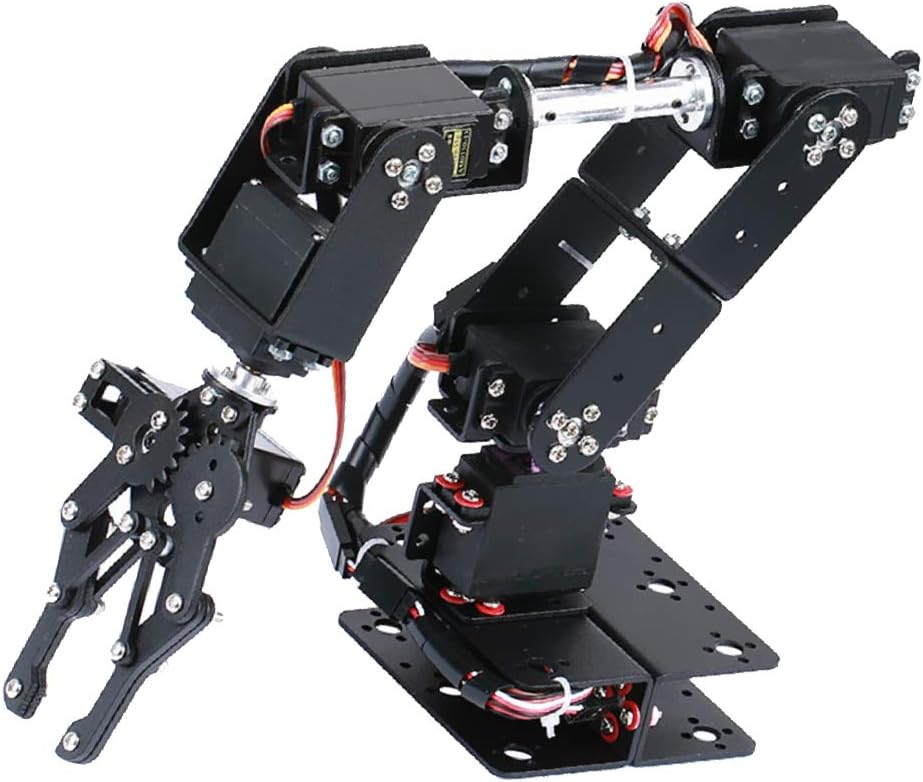 Lo sterzo è equipaggiato con una scato sterzante in metallo MG996, che 'uscita stabile. È anche possibile utilizzare del digitale con una coppia elevata. I giunti dello sterzo sono dotati di cuscinetti a tazza importati, che non rendono lo sterzo flessibile, ma rendono sterzo degli ingranaggi dello sterzo nello stesso macchina gradi di libertà è ampiamente utilizzata 'insegnamento dei college università, nel produzione personale di fai- nel formazione dei maker. Può essere considerato una semplice piatta dimostrazione multi-grado di libertà. Il suo sistema di alimentazione è composto servomotori, che possono realizzare dimostrazione di afferrare e trasportare il manipotore e dopo, giù, e sinistra e destra. le parti di supporto sono realizzate in di alluminio spessa , che migliora efficacemente stabilità del manipotore stesso.