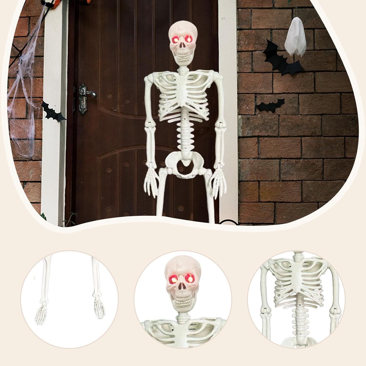 【Alta qualità e affidabilità】 La figura dello scheletro di Halloween è realizzata in materiale PP di alta qualità e durevole. 【Tutte le occasioni】: gli scheletri a corpo intero sono perfetti per scene e decorazioni di Halloween, case infestate, regali per feste di Halloween, decorazioni per interni ed esterni, giochi di tutti i giorni. 【Regalo ideale】: fantastico ornamento con teschio per bomboniere e regali di Halloween, un regalo attraente per amici e famiglie 【Decorazione di Halloween】: presenta un design dall'aspetto realistico, ideale per spaventare e la decorazione dello scheletro sarà popolare alla festa di Halloween 【Caratteristiche】: scheletro completo illuminato e realistico con giunti e luci mobili, pose in diversi ambienti, per esposizione e decorazione, aggiunge glamour alla tua casa o festa