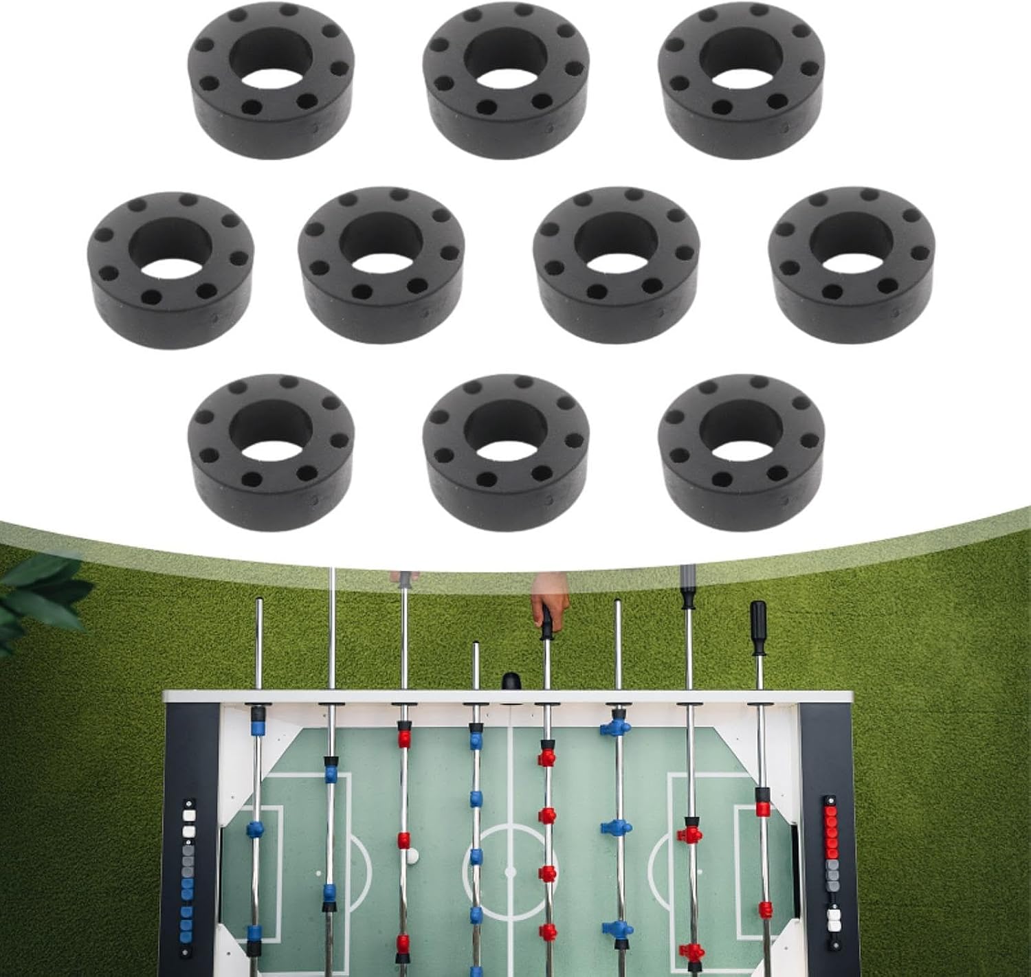 【Design】: la superficie liscia protegge le aste di calcio da graffi e altri danni 【Assorbimento di urti】: le proprietà di ammortizzatore aiutano a ridurre il rumore, un'esperienza di gioco più silenziosa e più piacevole 【Dimensioni】: accessori per giochi di calcio da tavolo sono dotati di un diametro interno di 0,50 pollici e un'altezza di 10 mm, rendendoli ideali per le configurazioni di calcio da tavolo standard 【Fit per i giochi di calcio da tavolo】: queste lavatrici da calcio da tavolo sono progettate specificamente come accessori per i giochi di calcio da tavolo, garantendo un'esperienza di gioco in forma e miorata 【Facile installazione】: progettati per una facile installazione, questi cuscinetti di gomma possono essere rapidamente collegati alla configurazione del calcio da tavolo, permettendoti di concentrarti sul goderti il gioco con la famia e amici