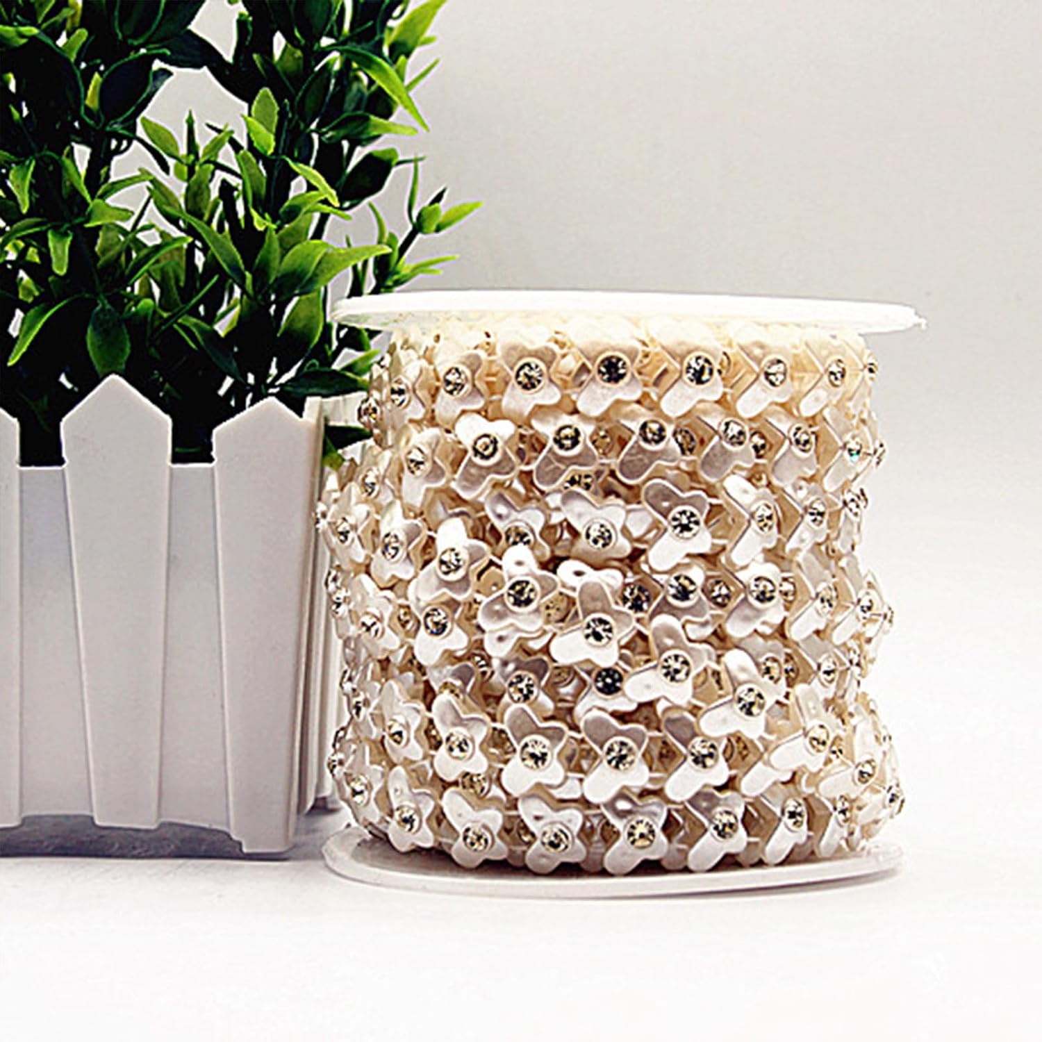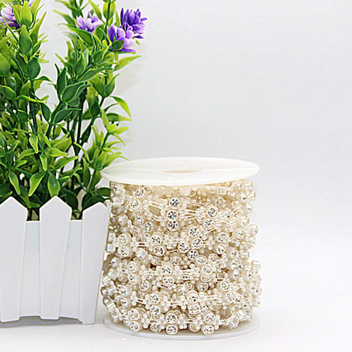 Elegante filo di perle, adatto a qualsiasi decorazione tu possa immaginare. La lunghezza di questo filo di perle artificiali è di 900 cm, in grado di soddisfare le tue esigenze di decorazione. Puoi tagliare il filo di perline alla lunghezza desiderata con le forbici. Il filo liscio per perline viene arrotolato in un fascio, facile da usare e riporre. Adatto per matrimoni, tavoli, regali, accessori per capelli e così via.