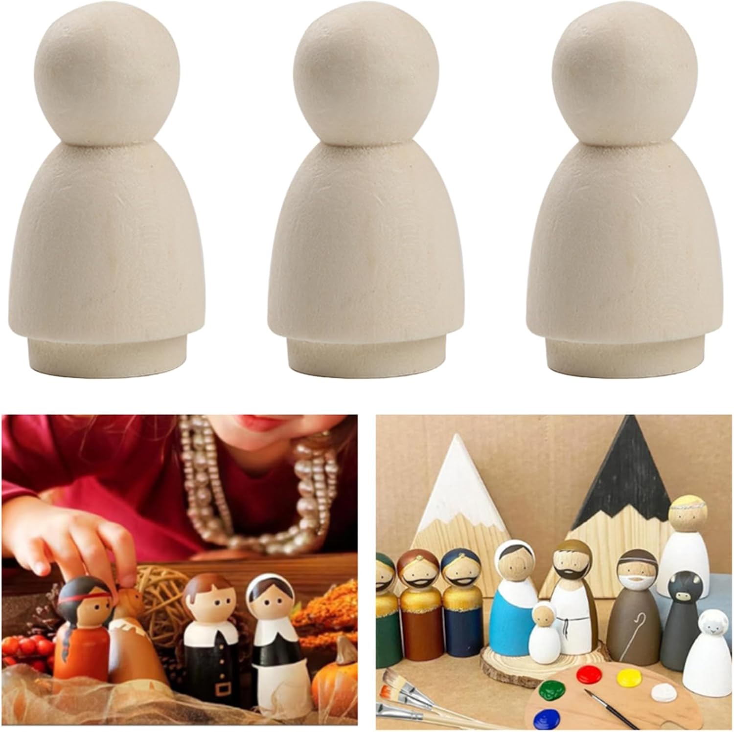 Applicazioni versatili: ideale per case di bambole, figure da gioco, decorazioni per le vacanze o decorazioni domestiche, queste persone in legno possono essere trasformate in personaggi, ornamenti o pezzi decorativi personalizzati. Pacchetto di valori di 100: questo set include 100 bambole PEG non finite, che ti danno un sacco di materiale per attività di classe, progetti fai -da -te, artigianato per feste o bisogni creativi per le piccole imprese. Legno stabile: accuratamente realizzati in legno naturale selezionato, queste bambole PEG presentano una superficie liscia, motivi di grano e una consistenza uniforme, garantendo sia la durata che il fascino estetico. Sicuro e facile da usare: con bordi finemente levigati e una finitura senza schegge, le bambole PEG sono sicure da gestire..Il loro design leggero li rende facili da dipingere, incorsi o personalizzare per bambini e adulti. Divertimento creativo fai -da -te: ogni bambola vuota misura 3/4 x 2 pollici, la dimensione perfetta per pittura, tintura, colorazione o decorazione..Offrono infinite opportunità creative per progetti artistici e appassionati di artigianato.