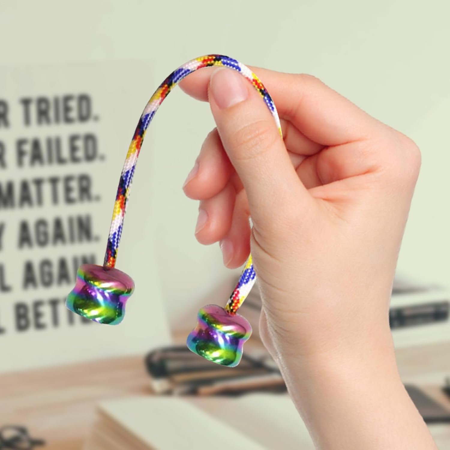 Allenamento della forza delle dita: con 2 perline attaccate alle due estremità della corda, questo giocattolo preoccupato può essere girato e rimbalzato nella mano, migliorando la destrezza del dito, la coordinazione occhio-mano e le abilità a mano, offrendo una combinazione di divertimento e svago. Compagno adatto ai viaggi: mantieni la tranquillità a portata di mano con queste perline di preoccupazione che presentano una lunghezza regolabile e un design facile da trasportare. La dimensione leggera e compatta li rende perfetti per alleviare il disagio e lo stress in qualsiasi momento. Durata migliorata: grazie al cavo di stretching resistente all'abrasione e ai materiali di alta qualità rivestiti con superfici resistenti alla ruggine, perline di agitazione preoccupazione presentano un uso a lungo termine senza compromettere la resistenza o la qualità. Uso approfondito: rilassati e divertiti con le perle di preoccupazione durante le attività indoor ed esterne, nelle imprese, all'aperto e anche nelle feste degli amici; Una soluzione indispensabile per il disagio e il sollievo dallo stress. Regalo unico: alza il tuo umore e riduce il disagio con perle di raccolta di preoccupazione. Regala il regalo pratico perfetto per i tuoi cari senza alcuna occasione. Ideale per migliorare la concentrazione e la concentrazione, soprattutto per coloro che lottano contro stress e problemi di tensione.
