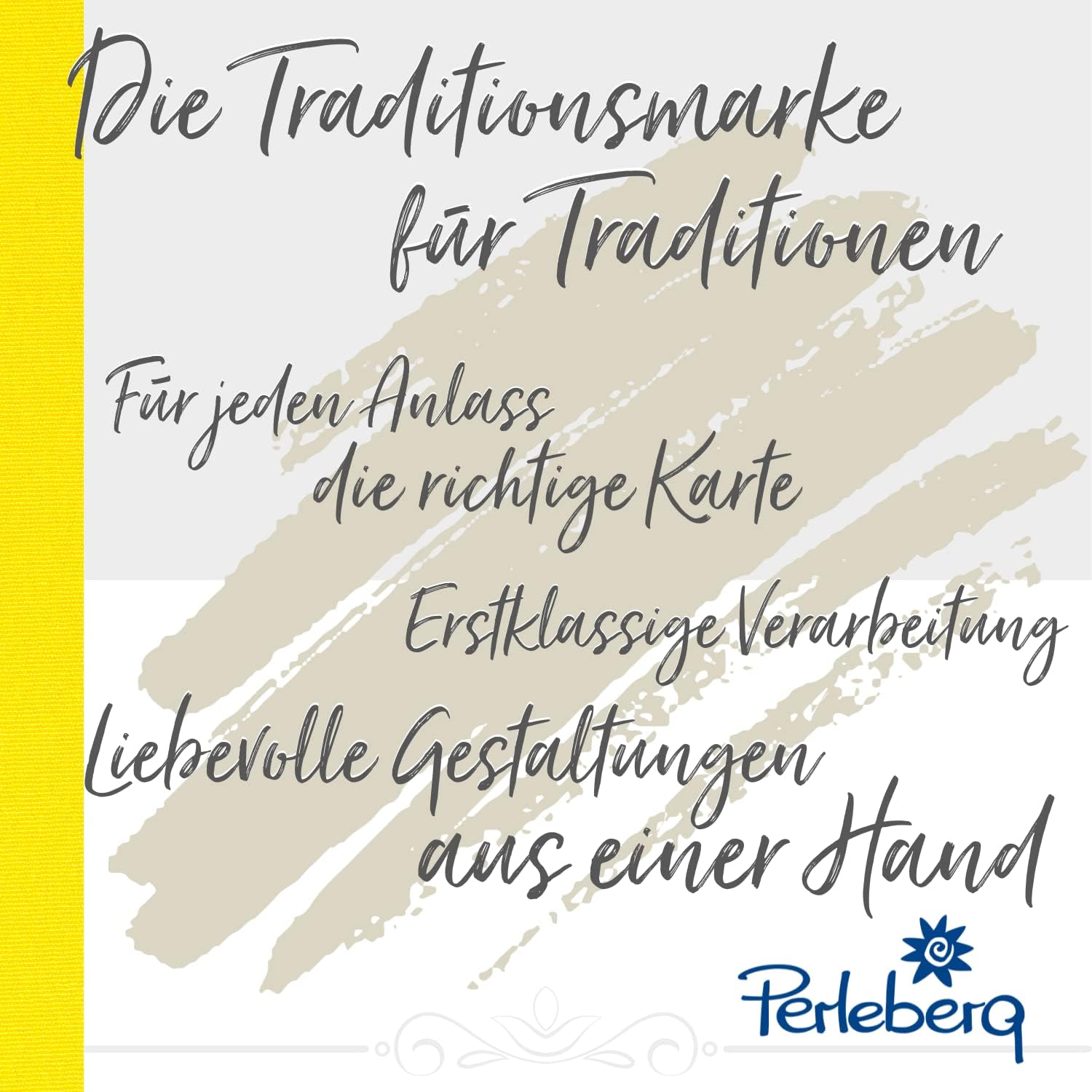Collezione unica: la nostra collezione di carte Midi brilla con effetti metallici, brillantezza e applicazioni. C'è sempre una clip adatta da attaccare a fiori e regali. Ampia scelta: da Perleberg troverete cartoline per ogni occasione possibile. Dai biglietti d'auguri ai biglietti di battesimo fino ai biglietti di Natale, è tutto qui: rendi felici i tuoi cari. Qualità Premium: vogliamo rendere felici le altre persone. Ecco perché realizziamo tutti i nostri biglietti d'auguri con materiali di prima qualità e grande cura. Certificato: prendiamo molto sul serio la nostra responsabilità nei confronti delle persone e della natura. Le nostre carte sono ampiamente certificate FSC (FSC C136244) per garantire una silvicoltura sostenibile. PERLEBERG - Siamo sinonimo di qualità premium. La marca Perleberg è da molti anni una delle dimensioni fisse del settore ed è uno dei principali editori di biglietti d'auguri in Germania.