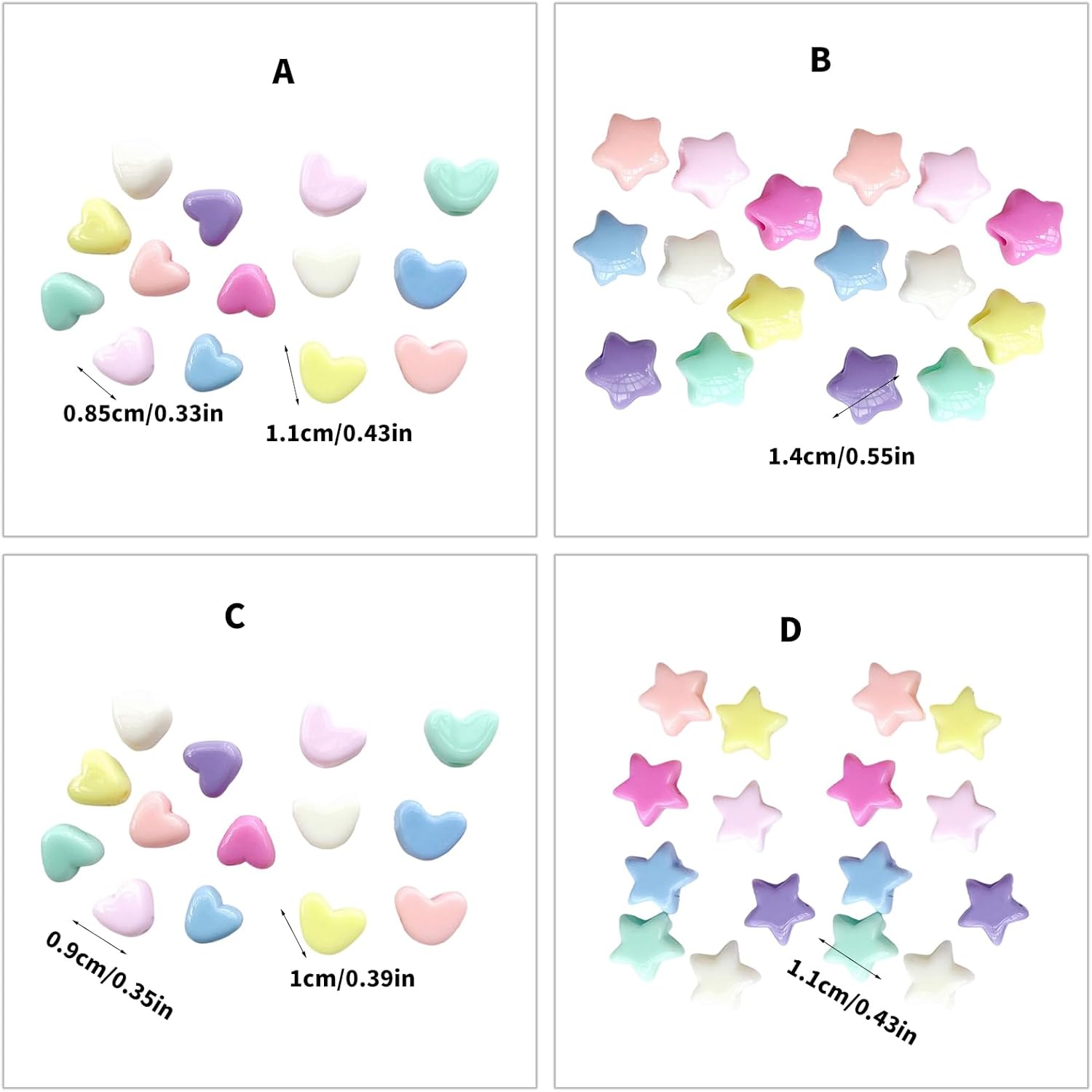 Queste perline sfuse utilizzano acrilico selezionato, garantendo durata e comfort mentre aggiungono un tocco di colore a qualsiasi treccia o progetto di accessorio per capelli per progetti artistici scolastici, creazione di gioielli artigianali o semplicemente aggiungere moda alle acconciature di tutti i giorni, le perline sono abbastanza multiuso per ogni occasione Con un mix di forma di stella/cuore in colore caramella, queste perline con foro grande consentono di personalizzare facilmente bracciali, collane e portachiavi, ispirando la creatività in ogni utente Migliora la tua treccia con perline per capelli in silicone, caratterizzate da un design morbido e colorato per creare acconciature vivaci per bambini, ragazze e donne Ideali per bambini, adolescenti e adulti che amano sperimentare acconciature creative, queste perline offrono infinite possibilità di styling