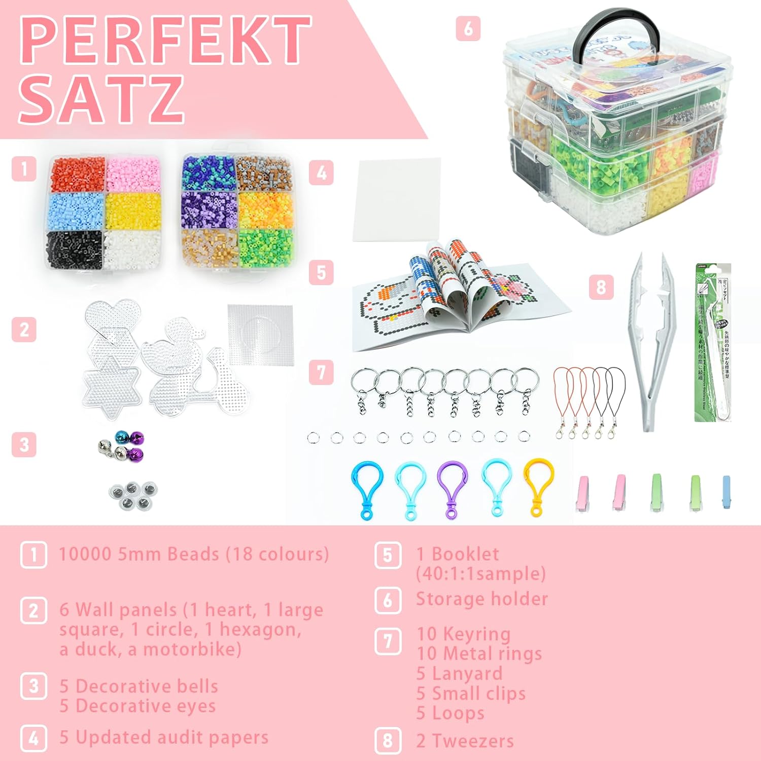 Materiali di alta qualità: le microsfere d'acqua sono realizzate al 100% in materiale plastico / resina ecologico, senza BPA, non tossico. Certificato da CE, ASTM. Scegliere il materiale più sicuro per proteggere la sicurezza dei tuoi bambini. Questo prodotto deve essere usato sotto la supervisione di un adulto. Kit fai-da-te per ricarica di microsfere di perle d'acqua: contiene 10000 perle in 12 colori con 5 forme di assi, cuore, esagono, cerchio, quadrato e stella. Il set include anche 2 pinzette e 5 fogli da stiro riutilizzabili per unire il design e proteggere il ferro. Il bambino può fare qualsiasi tipo di forma come desidera, come un ponte, un cane, un gatto. Operazione semplice: posiziona le perline con le pinzette sul supporto e segui la scheda del modello. Metti la carta da stiro sopra le perline e stira delicatamente fino a quando le perline si sciolgono. Capovolgi il disegno per stirare l'altro lato, quindi attendi che si raffreddi. (NOTA: il ferro da stiro non è incluso nella confezione, per i bambini durante la stiratura è necessario l'aiuto e la supervisione di un adulto). Giocattoli educativi: coltiva l'immaginazione e la creatività del tuo bambino, migliora le capacità motorie e il coordinamento occhio-mano. Perfetto per compleanni, natale, festival, attività indoor / outdoor, date di gioco, attività genitore-figlio e vacanze. Perfetto per realizzare anelli, portachiavi, pendenti, disegni 3D, personaggi dei personaggi, accessori e ornamenti. Molteplici funzioni: può creare molti modelli carini, può essere usato come ornamento appeso, un cubo di rubik colorato, un portachiavi ecc. Come regalo e altri accessori insieme al pacchetto.