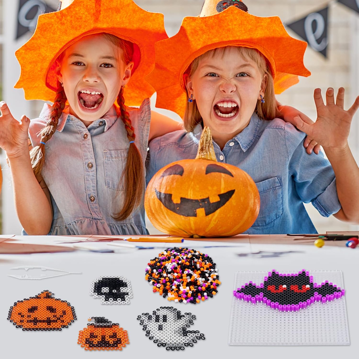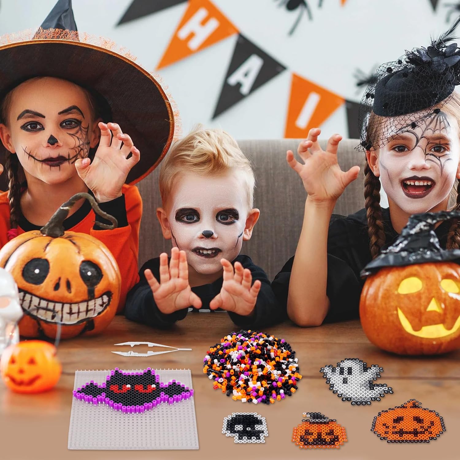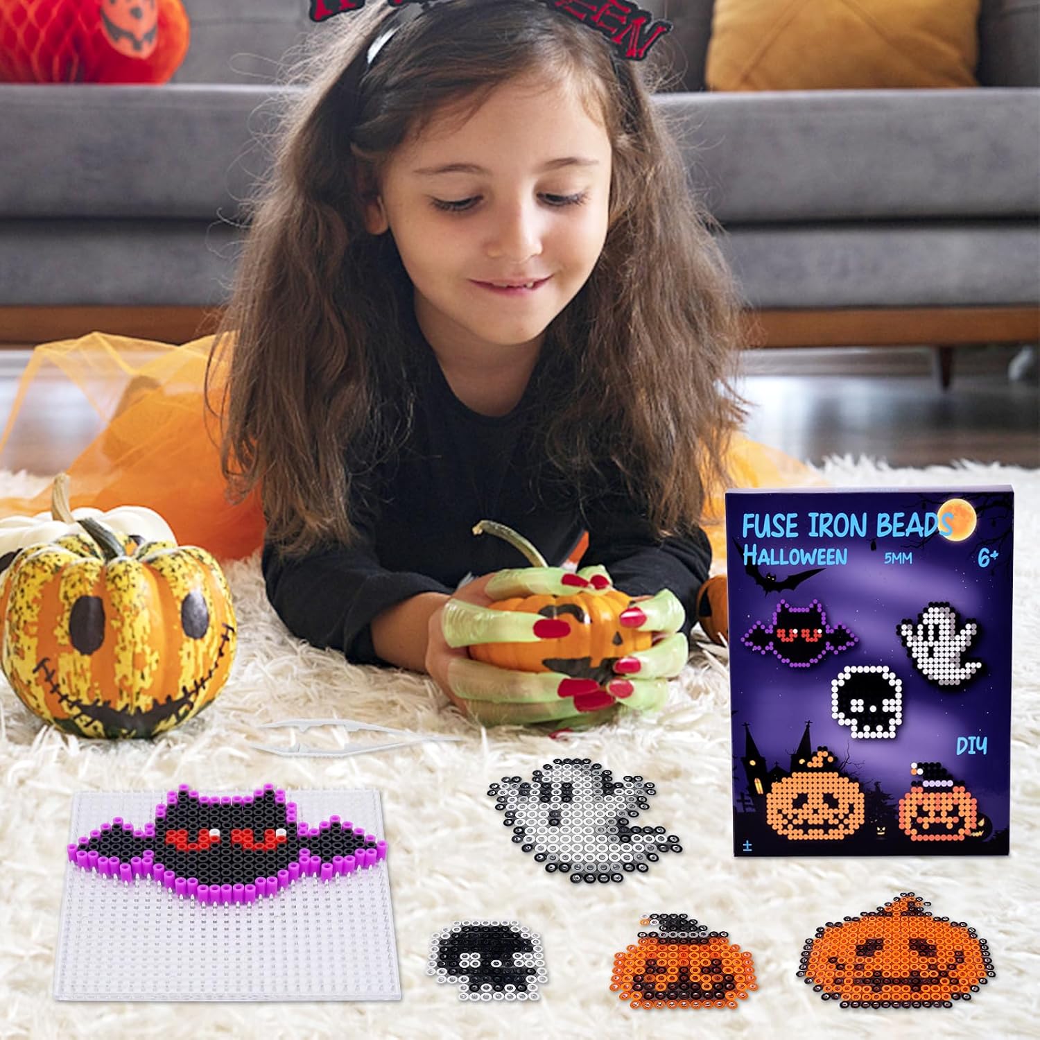 Set di perline grandi da stirare: set di perline con diversi accessori: circa una confezione di perline colorate (5 mm), 5 modelli a tema Halloween, piastre quadrate trasparenti, 4 fogli di carta da stirare, 4 collane di perline, 4 ciondoli per cellulare in diversi colori, 8 piccoli anelli di ferro, 4 adesivi per frigorifero, 1 pinzetta Tema di Halloween: queste perline grandi in stile Halloween offrono una gamma realistica e carina di motivi. I bambini hanno così la possibilità di creare le proprie decorazioni uniche. Questi includono fantasmi, teschi, zucche, pipistrelli e molto altro ancora, ecc. Spesso utilizzato per realizzare portachiavi, ciondoli per cellulari, sottobicchieri, magneti per frigorifero, spille, ecc Materiale premium: le perline e le piastre di perline sono realizzate in plastica di alta qualità, molto sicure, i modelli di perline da stirare non si sciolgono/si piegano durante la stiratura. Il materiale di perline da stirare per Halloween è forte e durevole, non facile da trasportare, senza bordi taglienti, perline XL extra grandi per un divertimento creativo per bambini di tre anni 【Stimolare la creatività e l'immaginazione】: il set di perline XL offre ai bambini la possibilità di sviluppare creatività e immaginazione. Con questo set di perline da stirare può distogliere l'attenzione dell'elettronica e rafforzare le abilità pratiche, il riconoscimento dei colori e la capacità di pensare. Adatto anche per adulti Regalo ideale per bambini: questo set di perline da 5 mm per Halloween è perfetto per regali, compleanni per bambini, ragazzi e ragazze che amano il fai da te per ore di divertimento. Questo set di perline da stirare per Halloween è un giocattolo ideale per ragazzi, ragazze, bambini di tutti i tipi, nipoti e studenti. Inoltre, è ideale come regalo per compleanni, Halloween o Natale