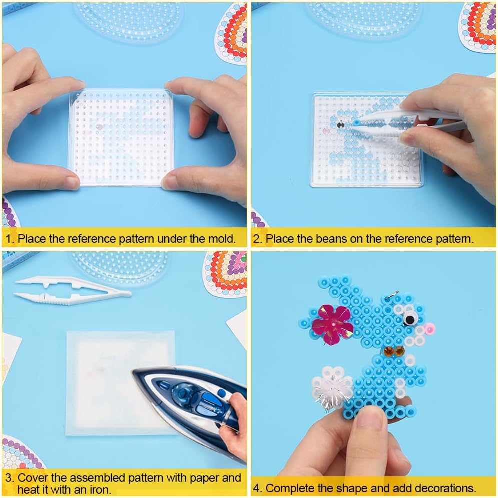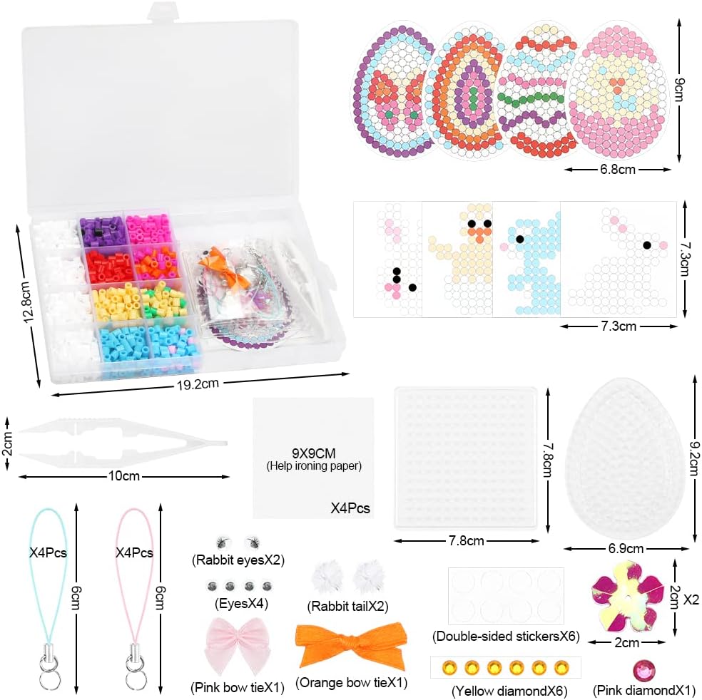 🐣Il set di Perline da stirare Pasqua comprende perline a Fusione 10 Colori, 2 Pegboard per Il Tempo Libero Creativo (uno quadrato, uno a forma di uovo), 8 cartamodelli colorati pasquali, 4 fogli da stiro, 1 pinzetta, 8 cordini colorati, per nastro biadesivo fisso, alcuni piccoli accessori 🐇Il Perline da stirare kit di ferro è semplice e divertente da usare. Posiziona il modello di carta colorata sotto la lamina ungueale trasparente, usa le pinzette per mettere le perline colorate sulla piastra superiore, copri le perline con carta da stiro e riscalda delicatamente il ferro finché le perline non si attaccano l'una all'altra. Dopo l'impostazione, puoi toglierlo e continuare a stirare leggermente o premerlo con un oggetto pesante per raffreddarl 🎨Il Perline da stirare Pasqua include 8 cartamodelli colorati pasquali (4 uova di Pasqua, 3 coniglietti, 1 pulcino). Puoi realizzare mestieri colorati pasquali basati su questi motivi oppure puoi usare la tavola per unghie trasparente per giocare con la tua immaginazione. ,Fai da te il tuo modello preferito 🎁Perline da stirare Pasqua è un'ottima attività pasquale, molto adatta a bambini e adulti. Può esercitare abilità pratiche e immaginazione mentre migliora il rapporto tra parenti e amici. È anche un perfetto regalo di Pasqua per la famiglia e gli amici. 🐤Il perline da stirare kit completo fornisce 8 cordini colorati, puoi trasformare l'artigianato finito in un ciondolo o un portachiavi e appenderlo nella stanza come decorazione pasquale o portarlo con te