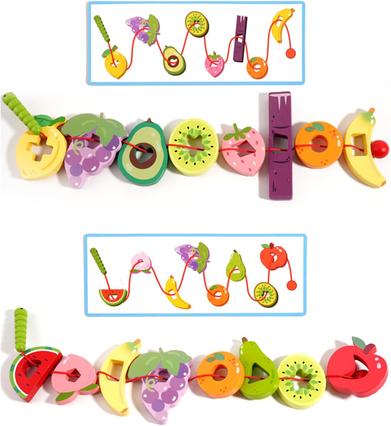 Compagno di Gioco Affidabile: Le perline per bambini realizzate con legno massello offrono superfici lisce e senza schegge, garantendo sicurezza mentre i bambini si divertono con un gioco fiducioso. Il vantaggio aggiuntivo del filo resistente supporta un uso prolungato durante le attività di esplorazione creativa a casa o in ambienti ispirati all'aula, assicurando stabilità e divertimento in ogni momento di apprendimento. Strumento Educativo Interattivo: Questo gioco di infilare favorisce l'interazione genitore figlio stimolando la narrazione di storie sui bruchi mentre aiuta i bambini a riconoscere colori e forme in modo divertente e coinvolgente. Attraverso sessioni di gioco guidate, infonde amore e divertimento in un ambiente creativo che rafforza naturalmente i legami familiari e supporta lo sviluppo delle capacità cognitive e sociali del bambino, rendendo ogni momento un'opportunità di apprendimento gioioso Stile Moderno e Accattivante: I giocattoli di infilare per bambini con design a che mangia la frutta catturano l'attenzione dei piccoli grazie ad apparenze vivaci e . Favoriscono lo sviluppo sensoriale e la coordinazione occhio-mano in scenari di gioco coinvolgenti, ideali per affinare le abilità motorie e la creatività durante il gioco educativo e hands-on per un apprendimento piacevole. Educazione Ispirata alla Frutta: Le perline e il filo per bambini piccoli mostrano colori brillanti e saturi sotto forma di mele, banane e fragole, facilitando il riconoscimento e la differenziazione intuitiva dei colori. Questo approccio rende l'apprendimento coinvolgente durante giochi creativi come il crafting o l'ordinamento, promuovendo momenti educativi gioiosi che stimolano la curiosità e le capacità cognitive nei primi anni di vita. Sviluppa la Coordinazione Naturalmente: Queste perline da infilare incoraggiano i bambini a infilare le perle su un filo, favorendo le abilità motorie fini attraverso azioni di afferrare, pizzicare e ruotare. Queste attività supportano la preparazione alla scrittura durante il gioco creativo, aiutando a costruire la coordinazione occhio-mano in modo fluido e naturale. Il prodotto è ideale per lo sviluppo motorio nei primi anni, con giochi educativi che rafforzano la coordinazione e le abilità di