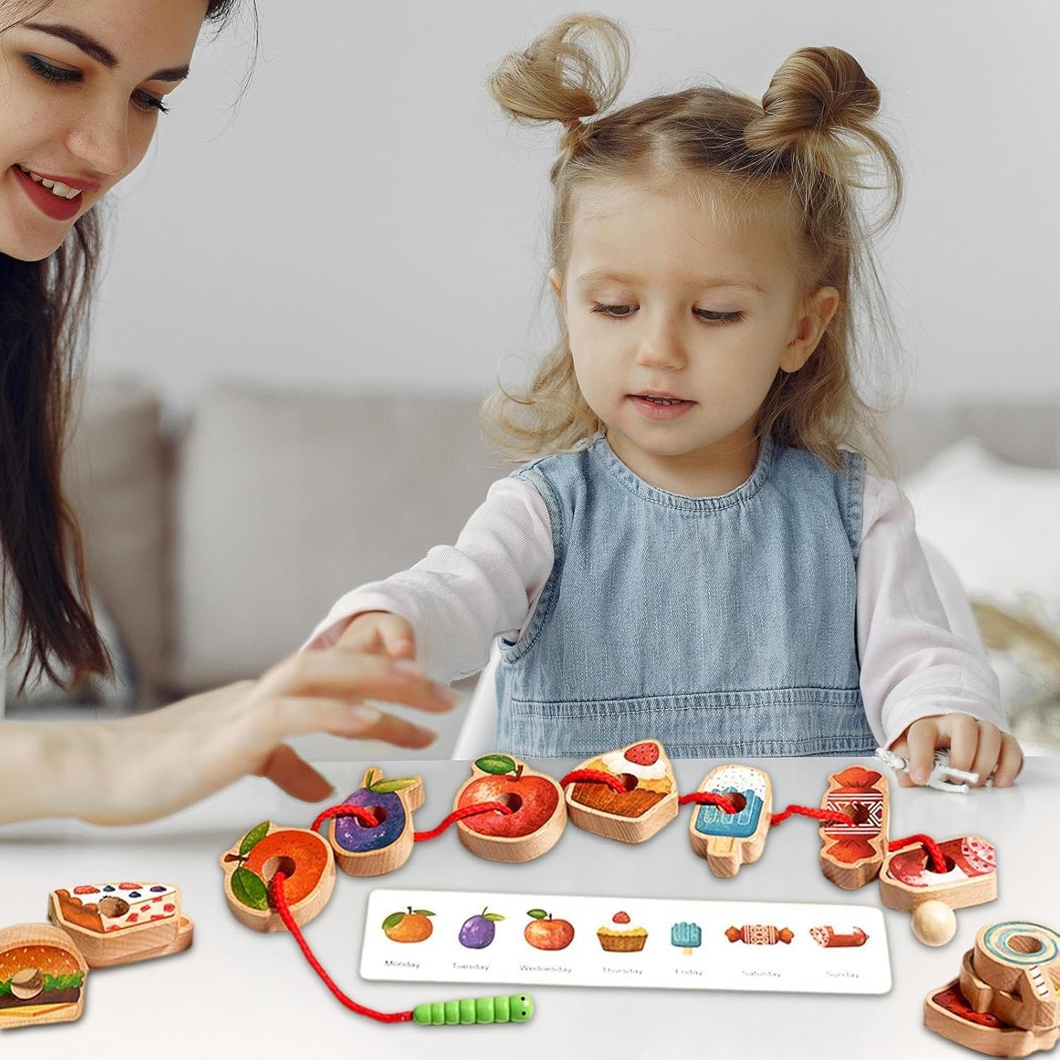 Sviluppo cognitivo: promuove le prime abilità matematiche attraverso la corrispondenza delle forme e il riconoscimento dei colori. Supporta lo sviluppo del pensiero logico nei bambini piccoli con giochi di apprendimento tattile che aumentano giocosamente la concentrazione e le capacità di risoluzione dei problemi. Spazio portatile: include una pratica borsa con cordoncino per gli spostamenti, promuove il senso di organizzazione nei bambini piccoli e consente versatilità a casa o in viaggio: ideale per giochi educativi in movimento. Impugnatura comoda: la struttura arrotondata consente ai bambini piccoli di allenare in sicurezza il controllo dei muscoli della mano e le capacità motorie attraverso efficaci esercizi di pinzettatura delle dita nel processo di apprendimento giocoso. Comfort e sicurezza per giocare: grazie agli elementi senza sbavature e ai cavi robusti, questi giocattoli da infilare offrono un ambiente di gioco sicuro. Il materiale naturale garantisce una comoda maneggevolezza e una maggiore sicurezza per i bambini piccoli durante il gioco. Giocattolo educativo con: Migliora il riconoscimento della vita attraverso forme di frutta tridimensionali. Incoraggia in modo giocoso la memoria visiva e le capacità di classificazione di base durante le attività di infilatura per i più piccoli.