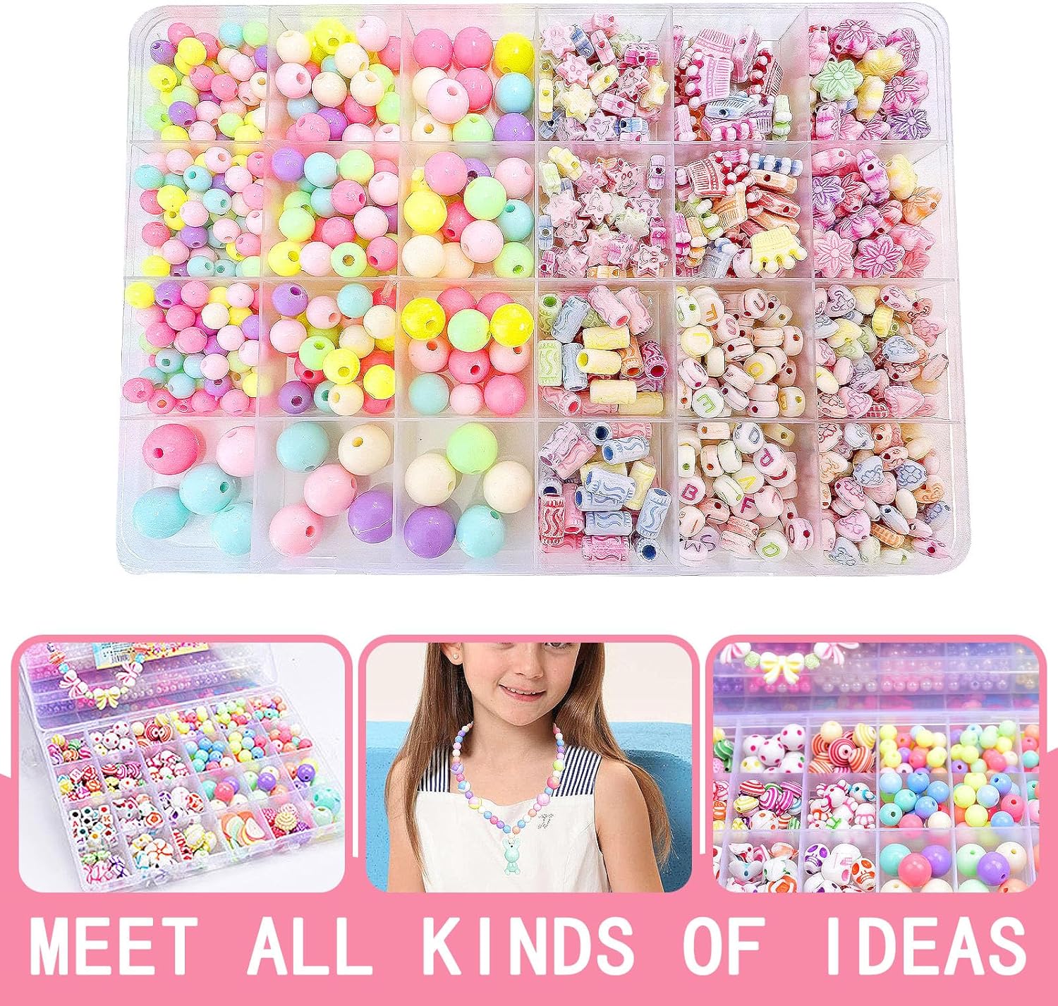 Regali per le ragazze: le perline da infilare possono essere utilizzate come regalo di compleanno, calendario dell'avvento per le ragazze, regalo per la festa dei bambini, regalo per la scuola e regalo di Natale per i bambini. I bambini possono anche creare braccialetti unici da regalare ad amici e parenti I bambini possono creare forme diverse con la loro immaginazione Le perline sono realizzate in plastica acrilica, non tossica per l'ambiente e durevole, il set di gioielli è sicuramente un regalo da sogno per le bambine. Abbiamo accuratamente selezionato 8 accessori da aggiungere alla scatola del braccialetto, è possibile realizzare bellissimi oggetti di artigianato come braccialetti, collane e cerchietti con perline di forme e colori diversi Bella confezione:Questa perlina viene fornita con una bella confezione, che è perfetta come regalo per la nipote, figlia, nipote, sorella Benefici: le perline fai-da-te sono ottime per rafforzare i muscoli delle mani/delle dita per i bambini in fase di pre-scrittura, promuovere la motricità fine e migliorare l'immaginazione e la creatività dei bambini