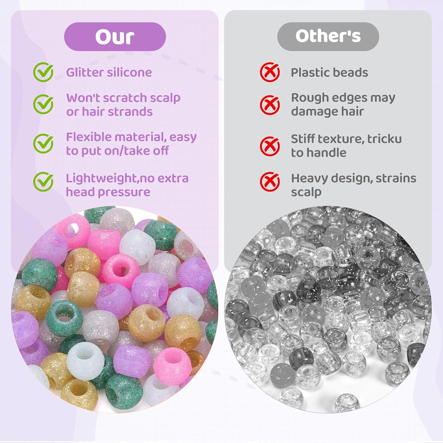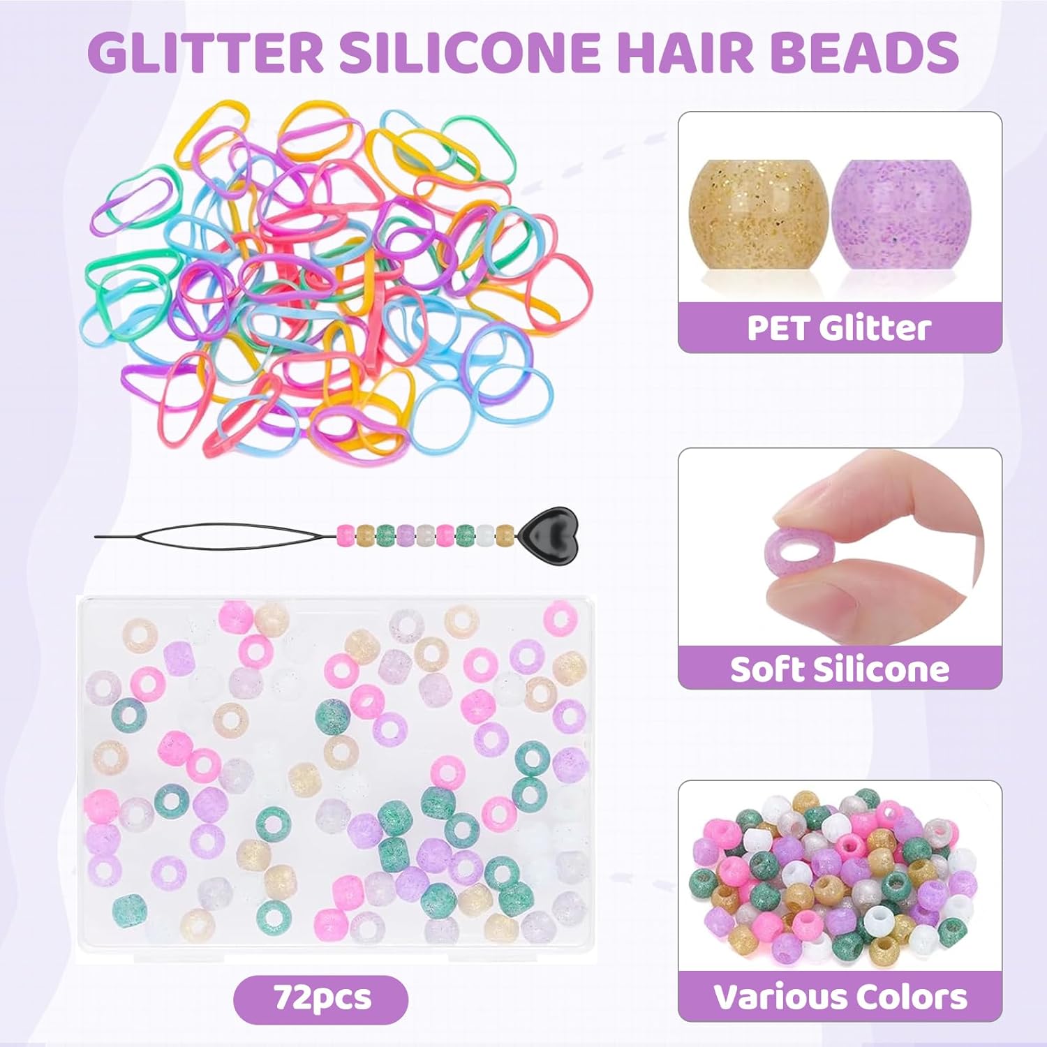 Accessori colorati per acconciature creative: Le perline per capelli in silicone glitterate FrostyFlair in 6 colori freschi danno vita a qualsiasi stile di acconciatura. Ideali per ragazze e bambini che amano sperimentare con i loro capelli. Perfette per trecce, dreadlocks o come fermagli, le perline in silicone da clip aggiungono un tocco speciale a ogni look Facili da usare e versatili: Le perline per capelli si fissano facilmente su qualsiasi chioma e sono perfette per acconciature fai-da-te. L'elastico assicura che le perline rimangano saldamente in posizione. Sia per intrecciare che per acconciare i capelli dei bambini, queste perline sono l'accessorio ideale per ogni pettinatura Durature e flessibili: Queste perline per capelli in silicone sono realizzate in materiale morbido e flessibile e resistono anche alle avventure più vivaci dei bambini. Grazie al materiale robusto, sono durevoli, resistenti e perfette per l'uso quotidiano. Le perline per capelli adatte ai bambini non sono solo per i capelli, ma anche per un sacco di divertimento nella vita quotidiana Uso versatile: Le perline colorate si adattano a molte occasioni, dalle feste di compleanno agli eventi speciali. Perfette per uno spettacolo di danza, un servizio fotografico o come idea regalo, con queste perline ogni acconciatura diventa un vero e proprio colpo d'occhio. Ideali per ogni ragazza che ama personalizzare i propri capelli Fantastico set per menti creative: Con 72 pezzi di perline per capelli in 6 colori diversi e elastici, sei al completo per creare nuove acconciature. Queste perline non sono solo un ottimo regalo per le ragazze, ma anche perfette per tutti coloro che vogliono abbellire i propri capelli con tocchi di colore. Le perline per capelli da clip offrono infinite possibilità di styling