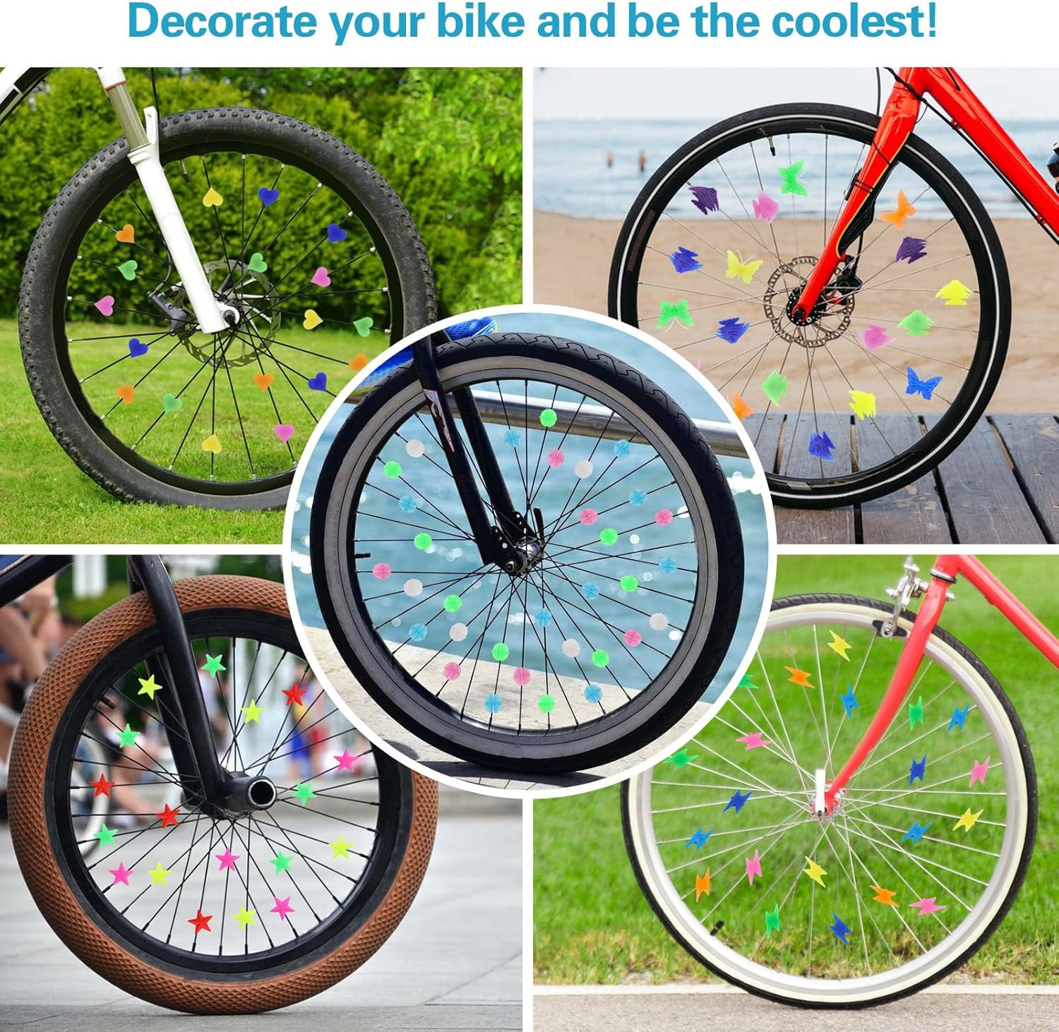【Perline per raggi in plastica di alta qualità】 Le perline per raggi per bicicletta per bambini sono realizzate in plastica di alta qualità, resistente, non facile da deformare e sbiadire, progettata con colori vivaci, leggera e portatile. Le perline per raggi della bici saranno un ottimo modo per decorare la tua bici e aggiungere divertimento al tuo viaggio in bicicletta. 【Divertente e sicuro】 La decorazione della ruota della bicicletta per bambini è progettata in una varietà di forme come cerchio, fulmine, farfalla, stella e cuore, che è semplice, carina e colorata. Con colori vivaci e forme diverse, queste perline per raggi da bici non solo aggiungono divertimento e personalità alla tua bici, ma migliorano anche la visibilità e la sicurezza durante la guida. (Nota: vengono illuminati solo i raggi sferici). 【Facile da installare】 Le clip per raggi per bicicletta per bambini sono facili da installare e rimuovere. Anche se è la prima volta che li usi, puoi metterli a posto con una semplice pressione dei raggi. L'accessorio bici per bambini è adatto per ruote con raggi in metallo con diametro di 2 mm. 【Colori colorati】 Le perline colorate per raggi della bicicletta sono disponibili in rosa, giallo, arancione, verde, viola e blu, 6 colori di campanelli in totale, i colori brillanti e vivaci possono facilmente attirare la tua attenzione e rallegrare il tuo umore, i raggi della bicicletta sono molto adatti per decorare le biciclette e ai bambini piaceranno di più le biciclette. (Nota: la quantità di ciascun colore è casuale). 【BUON REGALO】 Quantità sufficiente, le bellissime perle di raggi riflettenti possono essere utilizzate come regalo per i bambini in molte festività, come Halloween, Natale, Pasqua, compleanno, Capodanno, ecc. La clip per raggi per bicicletta per bambini è una decorazione pratica che rende le biciclette più eleganti e più estetiche.