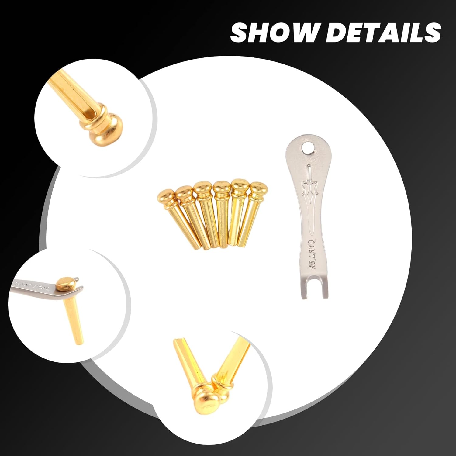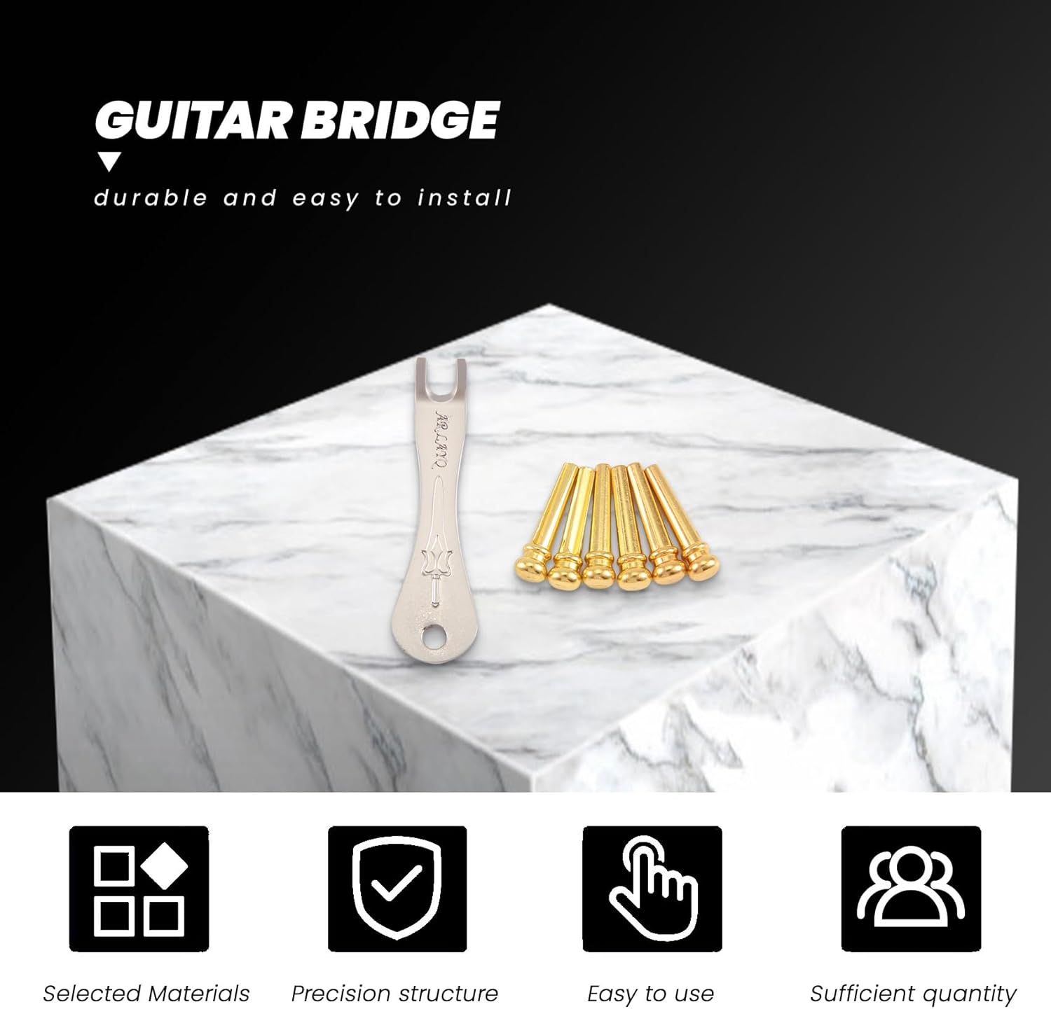 Bellissima superficie La lucentezza liscia migliora l'aspetto della tua chitarra. Progettato per una migliore qualità del suono Il ponte in offre una migliore trasmissione delle vibrazioni per una migliore qualità del suono. Perni in resistenti Il numero di perni in è difficile da rompere Adatto per la maggior parte delle chitarre acustiche, come o chitarre acustiche di marca.