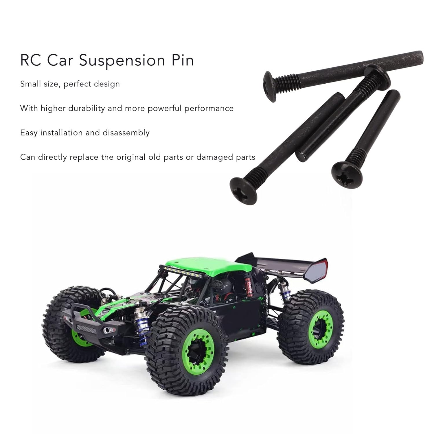 1. Materiale: la struttura in ferro ad alta durezza garantisce durata, resistenza all'usura e durata prolungata per prestazioni affidabili. 2. Assorbimento degli urti: riduce efficacemente le vibrazioni provenienti da superfici irregolari, migliorando la stabilità dell'auto e la fermezza del forcellone. 3. Aspetto: il design raffinato combina prestazioni stabili per un aggiornamento fantastico, fresco e pratico dell'auto RC. 4. Design compatto: le dimensioni ridotte offrono prestazioni potenti con maggiore durata e funzionamento regolare. 5. Installazione: comodi passaggi per una facile rimozione e sostituzione diretta delle parti originali o danneggiate.